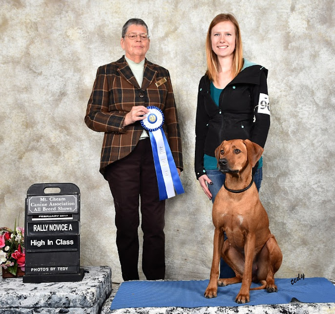 Kyara loves to excel at everything she does and has proven herself in every ring she enters; she obtained a Best Baby and Best Puppy in Group in two very large and competitive classes, Best of Breed over some lovely specials and has finished every trial with multiple high in class placements in Rally Novice, Rally Advanced and Rally Excellent. Kyara is currently the #1 Ridgeback in Canada for Rally! This year Kyara and I will be continuing to do everything she loves, including making appearances in the Veteran and Rally rings.