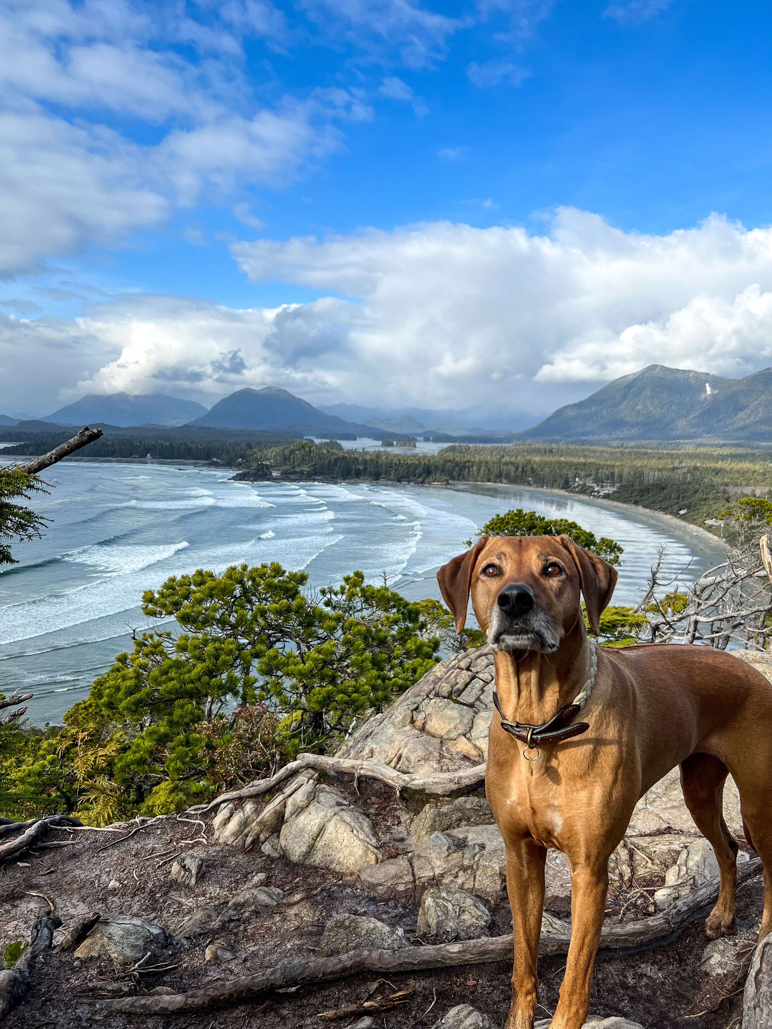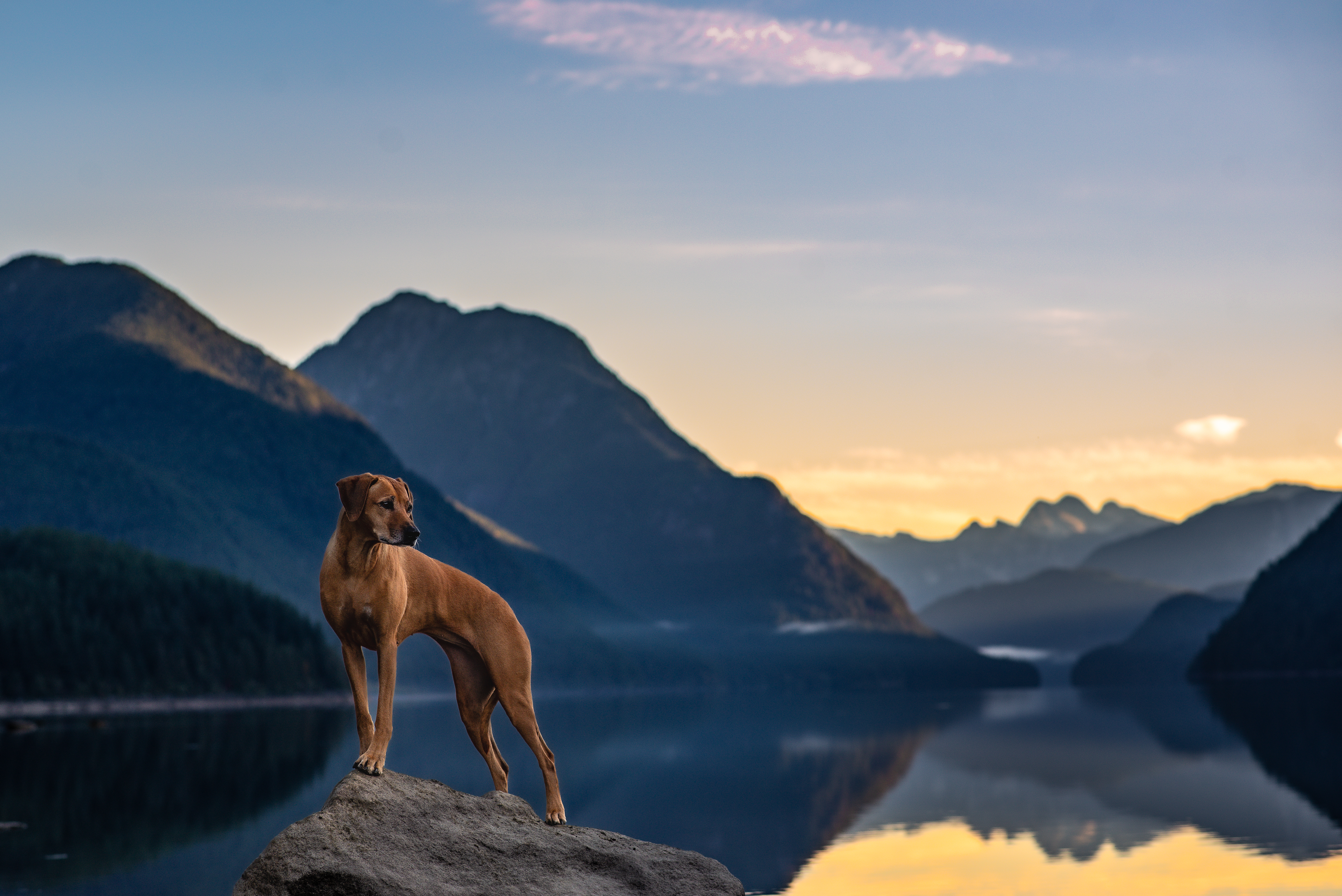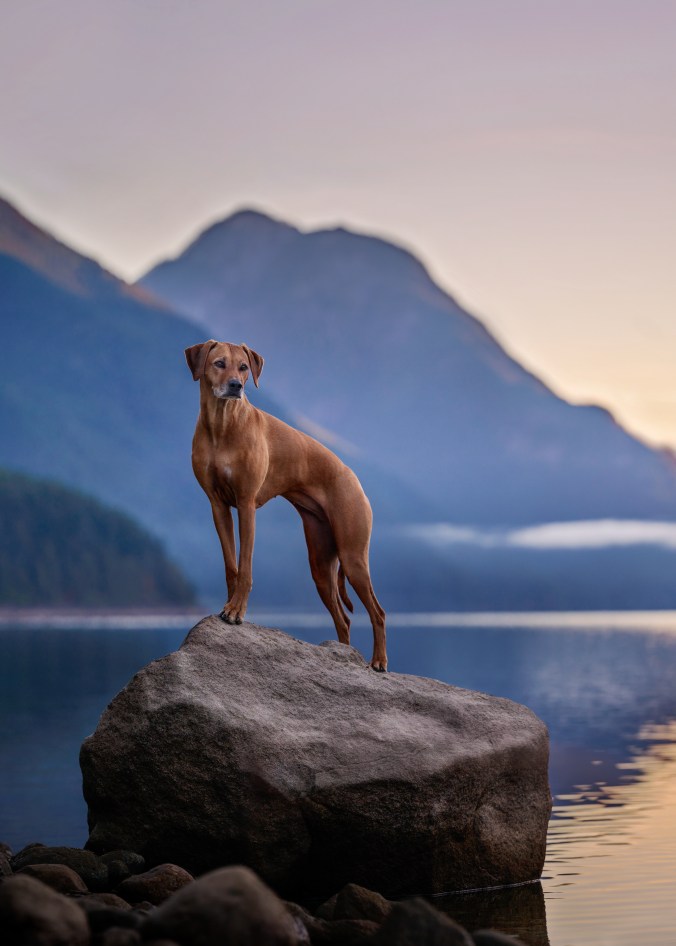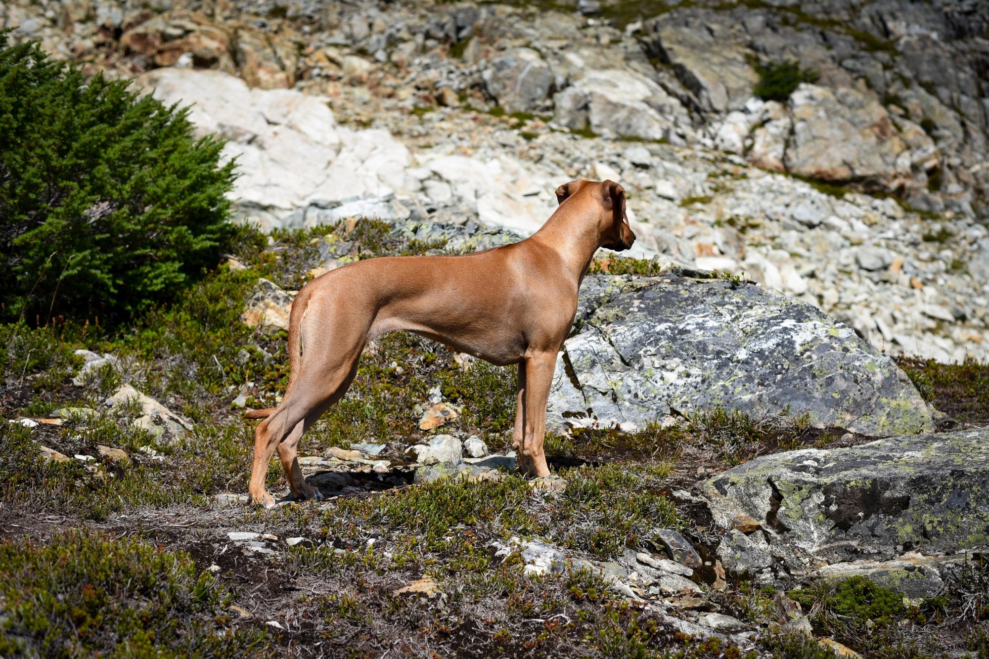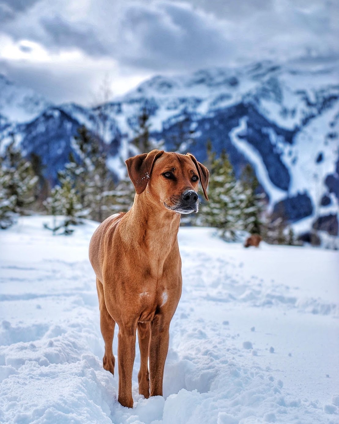 Gemma was my very first dog and has taught me so much throughout the years. She is a spicy little thing who holds her own within the pack. It amazes me how much personality she fits inside that little body of hers, and if you’re lucky enough to know her, she will make sure you always feel welcome with her happy howl-filled greetings. Gemma lives for mountain adventures and playing with her pack of ridgebacks.