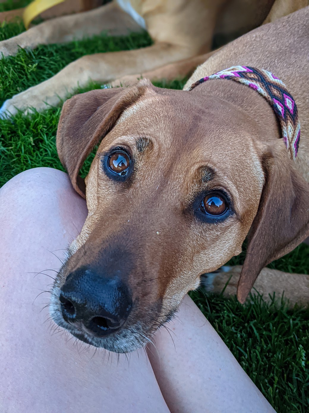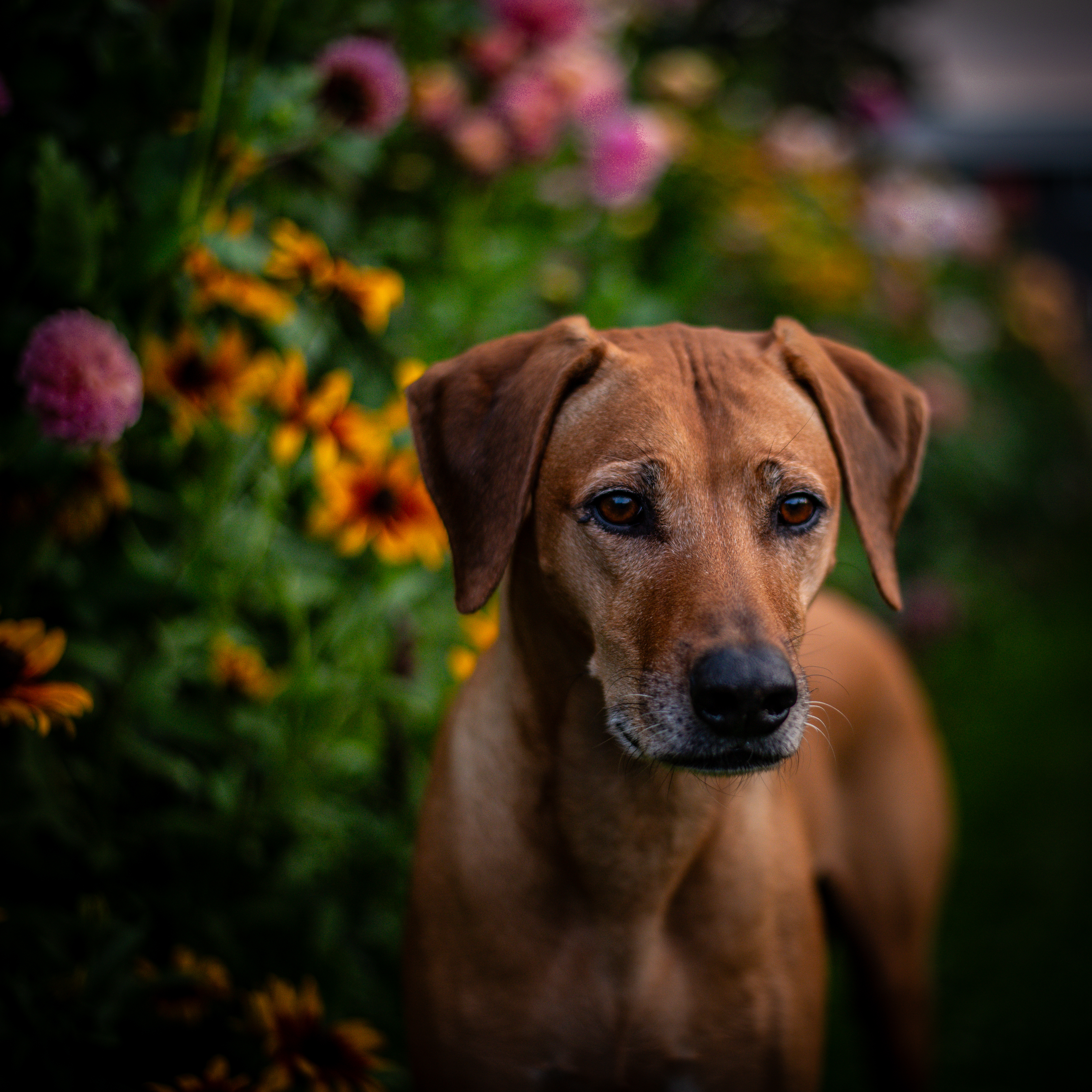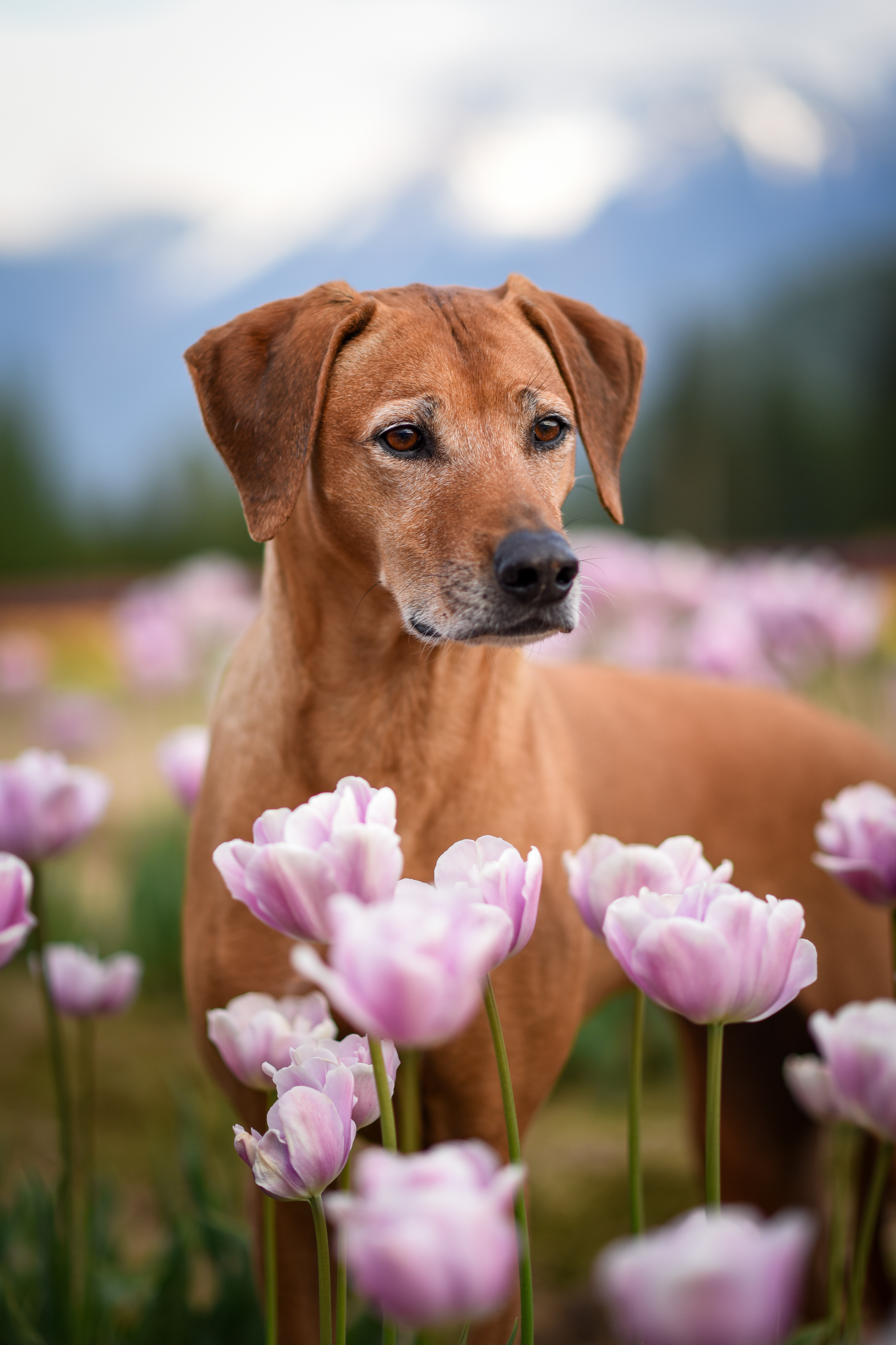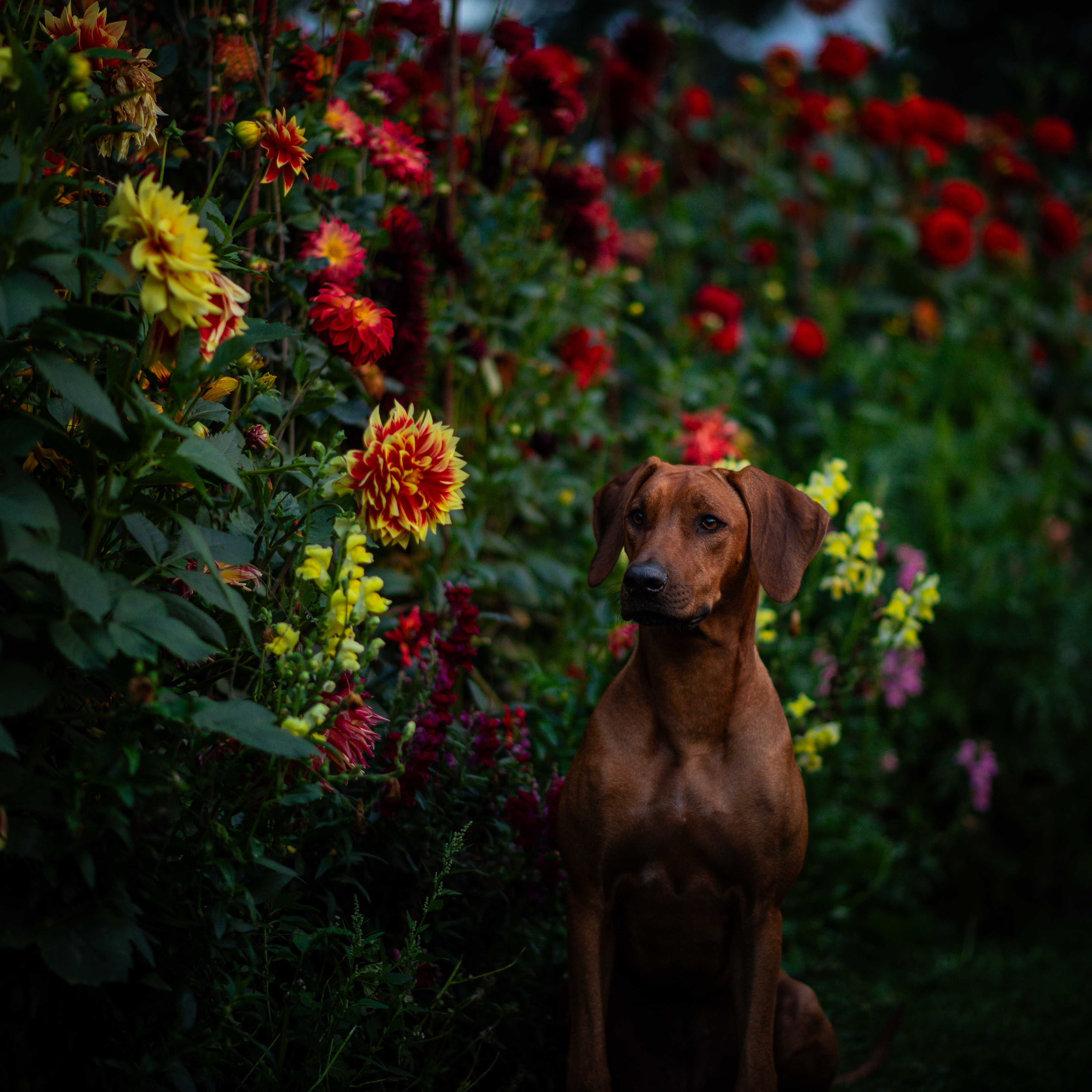 Gemma was my very first dog and has taught me so much throughout the years. She is a spicy little thing who holds her own within the pack. It amazes me how much personality she fits inside that little body of hers, and if you’re lucky enough to know her, she will make sure you always feel welcome with her happy howl-filled greetings. Gemma lives for mountain adventures and playing with her pack of ridgebacks.