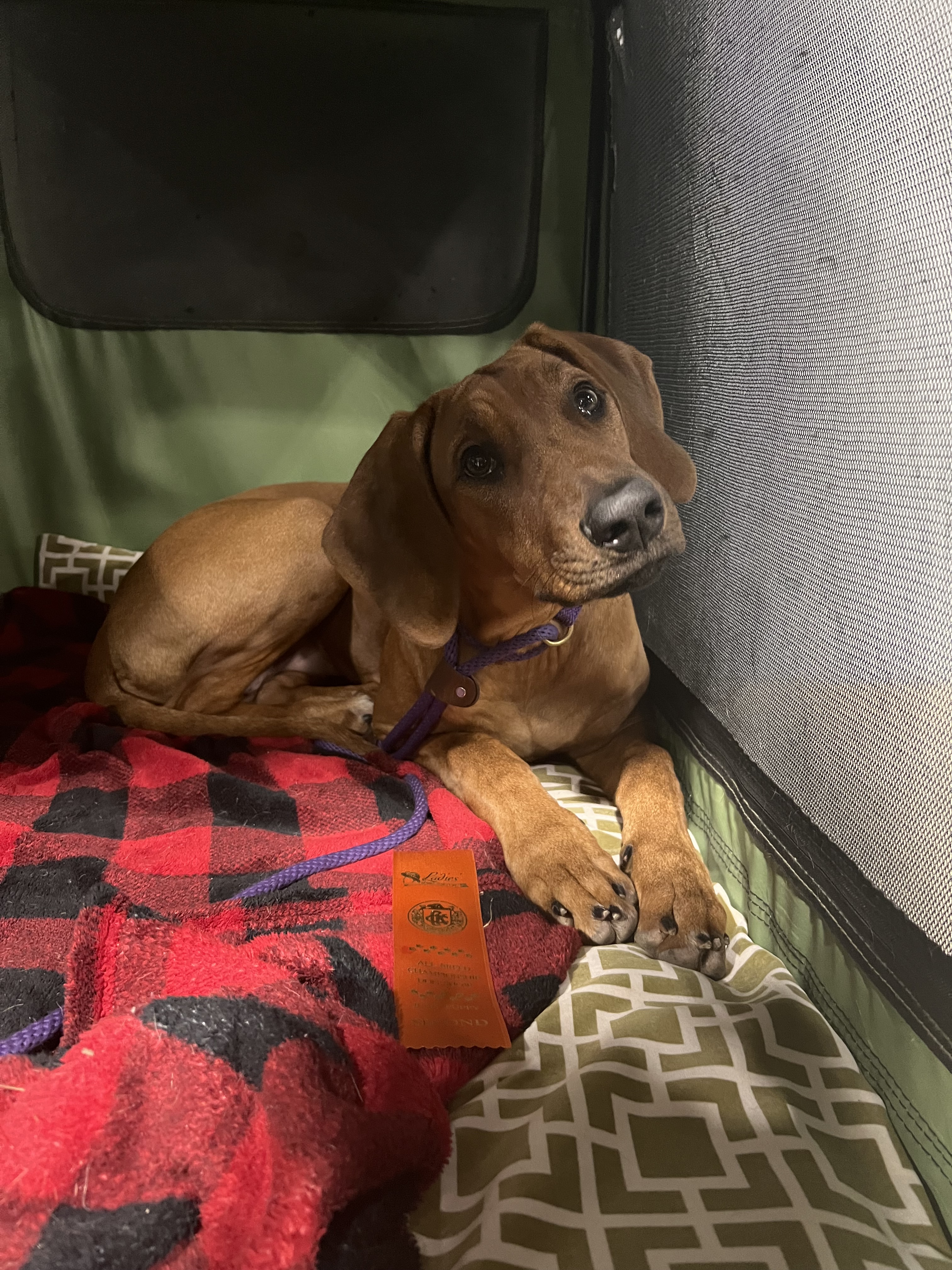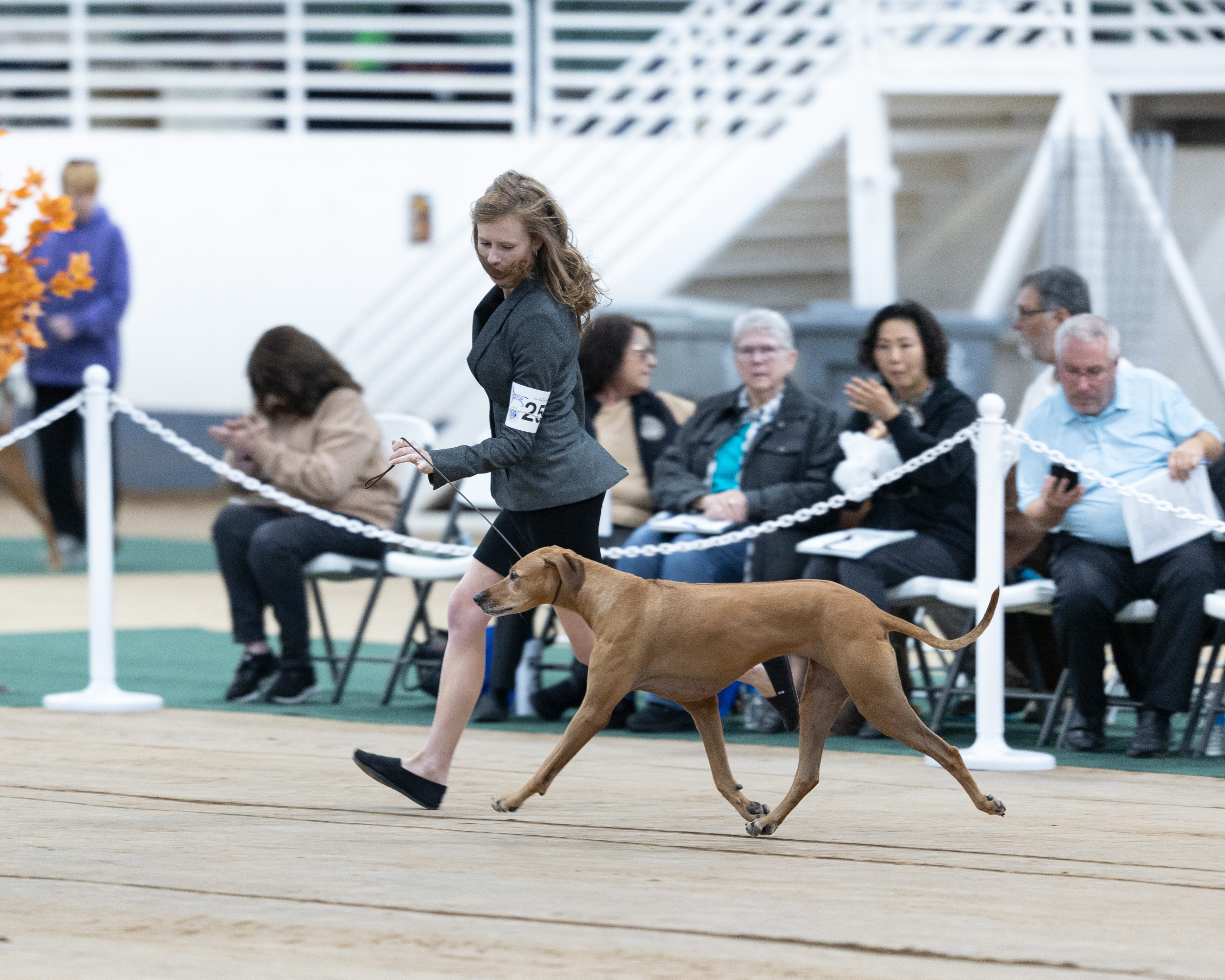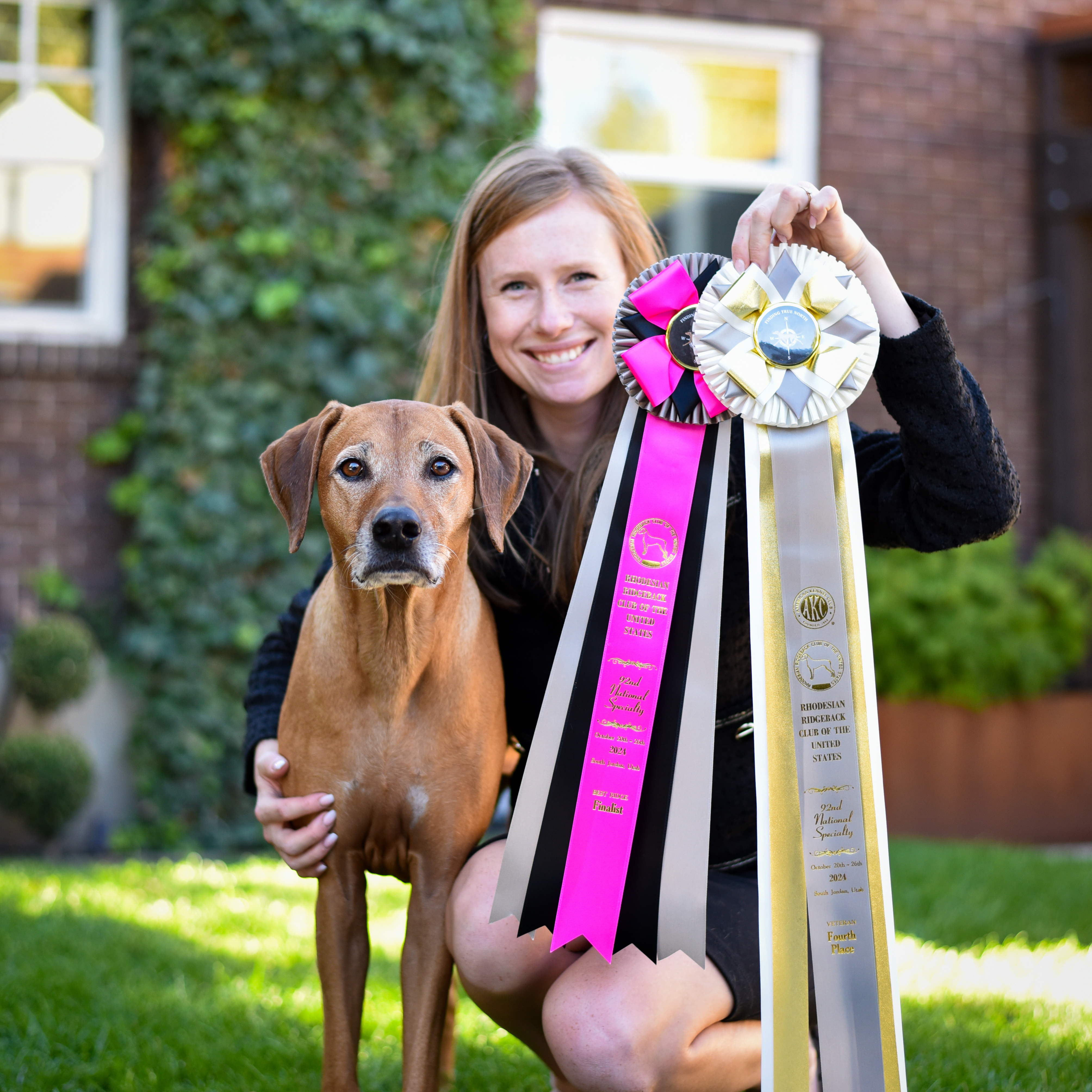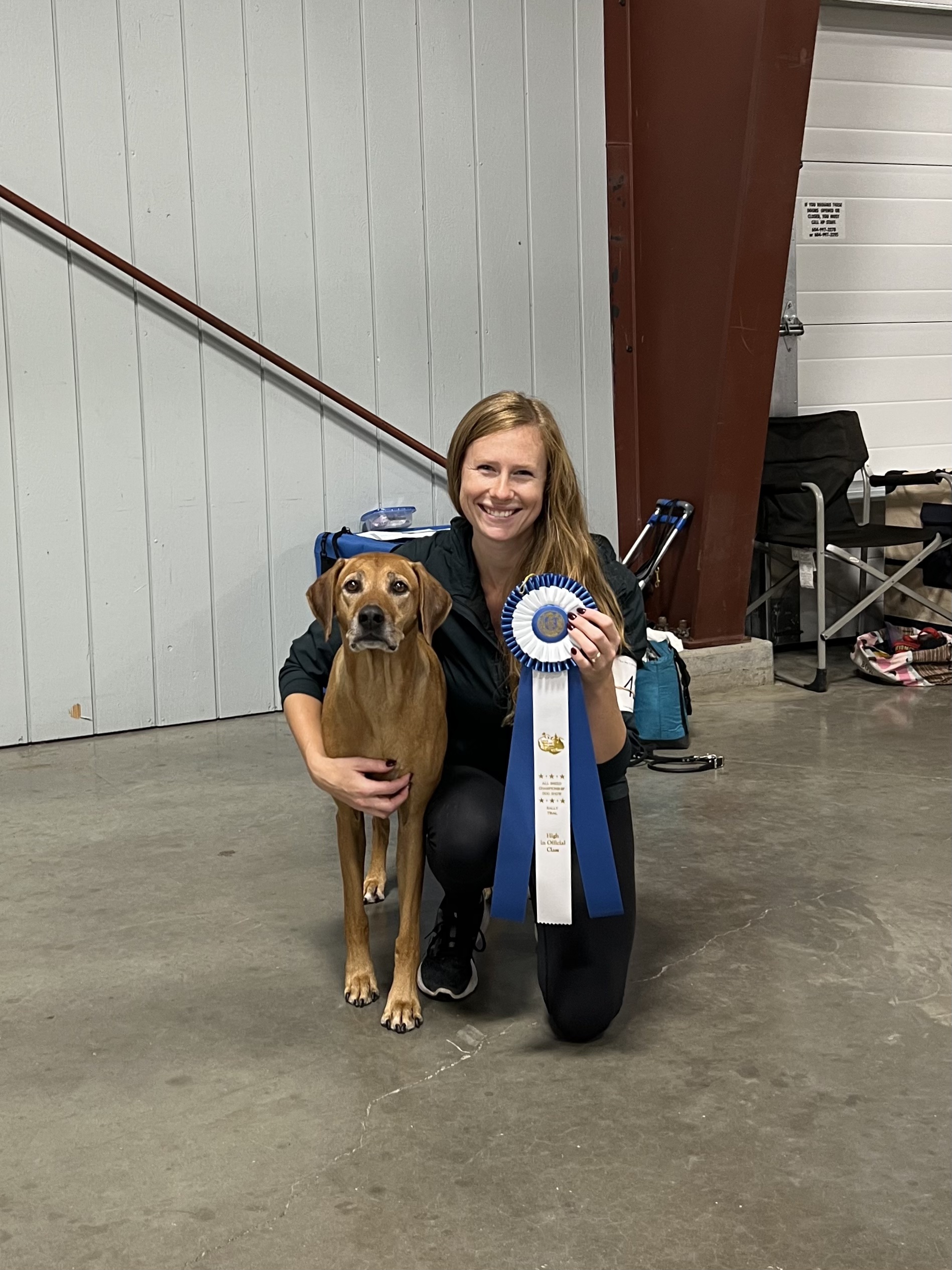 Completing her championship entirely with majors, her multiple BOB’s and group placings under breeder judges had her finish within the Top 10 Ridgebacks in Canada. In 2024, Zia obtained her Grand Championship (always owner handled).
