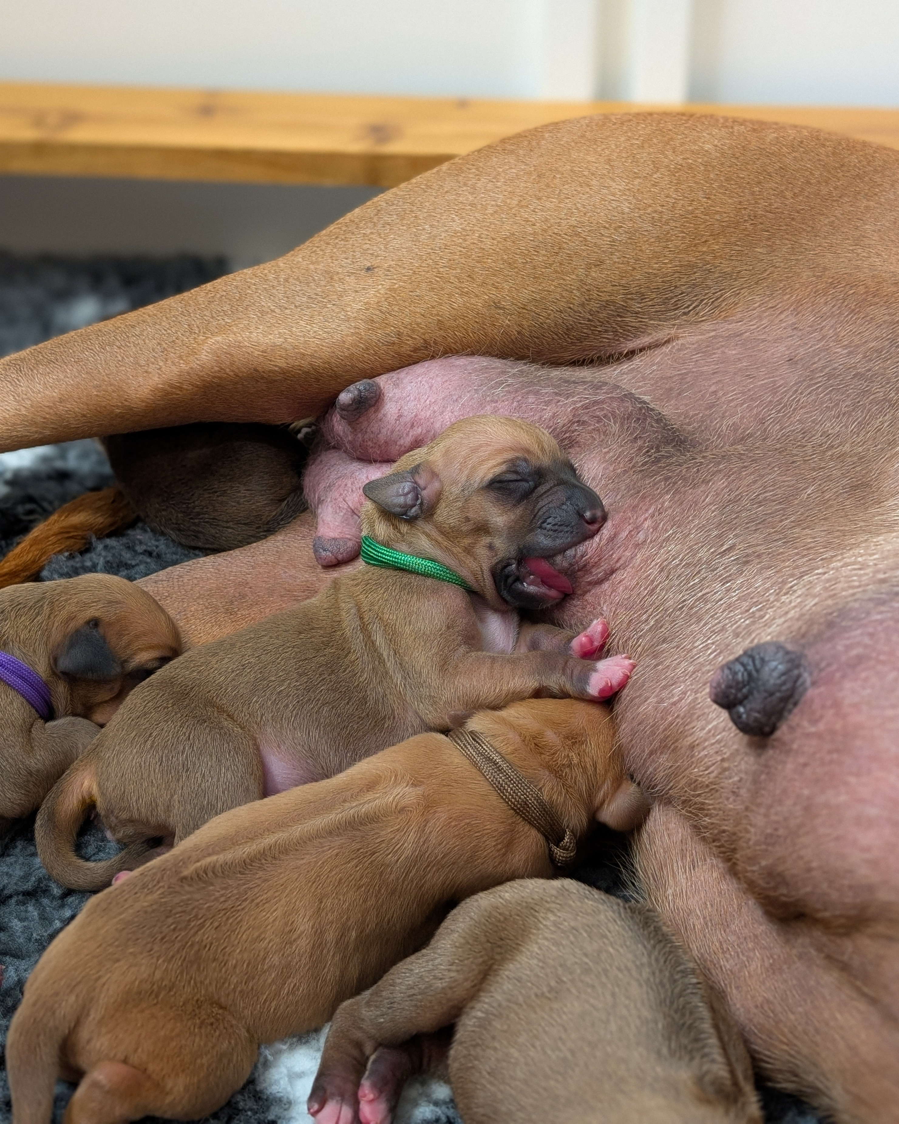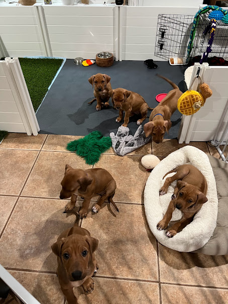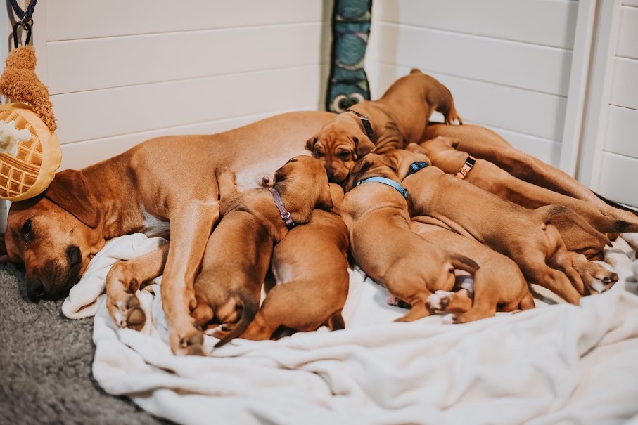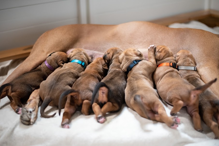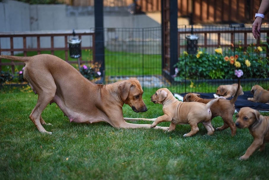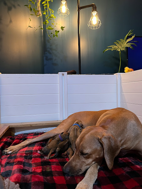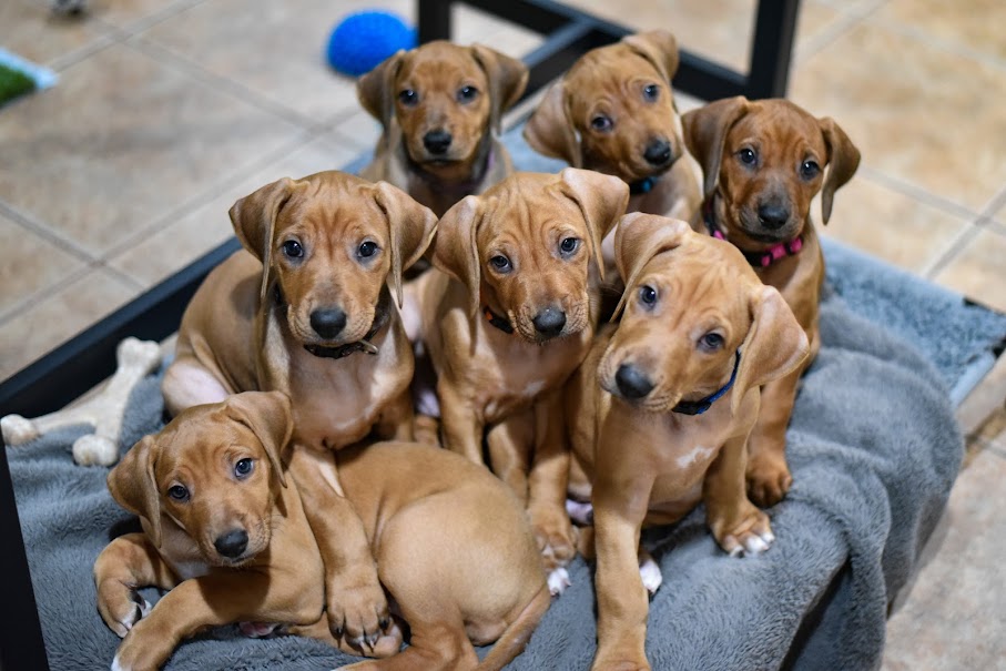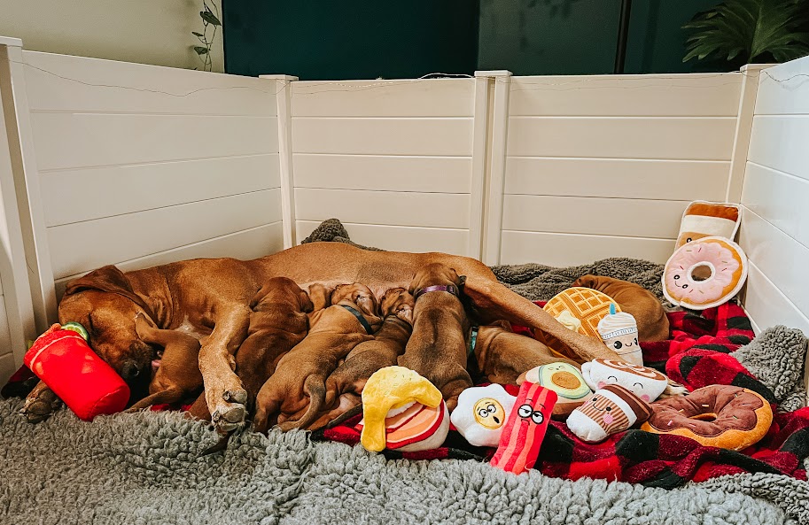 On April 8th, 2024 we began welcoming our Fruit & Veggies litter! Zia delivered 6 handsome boys and 3 beautiful girls. All puppies have lovely ridges and minimal white. We have one puppy with a kink and no dermoid sinus detected.