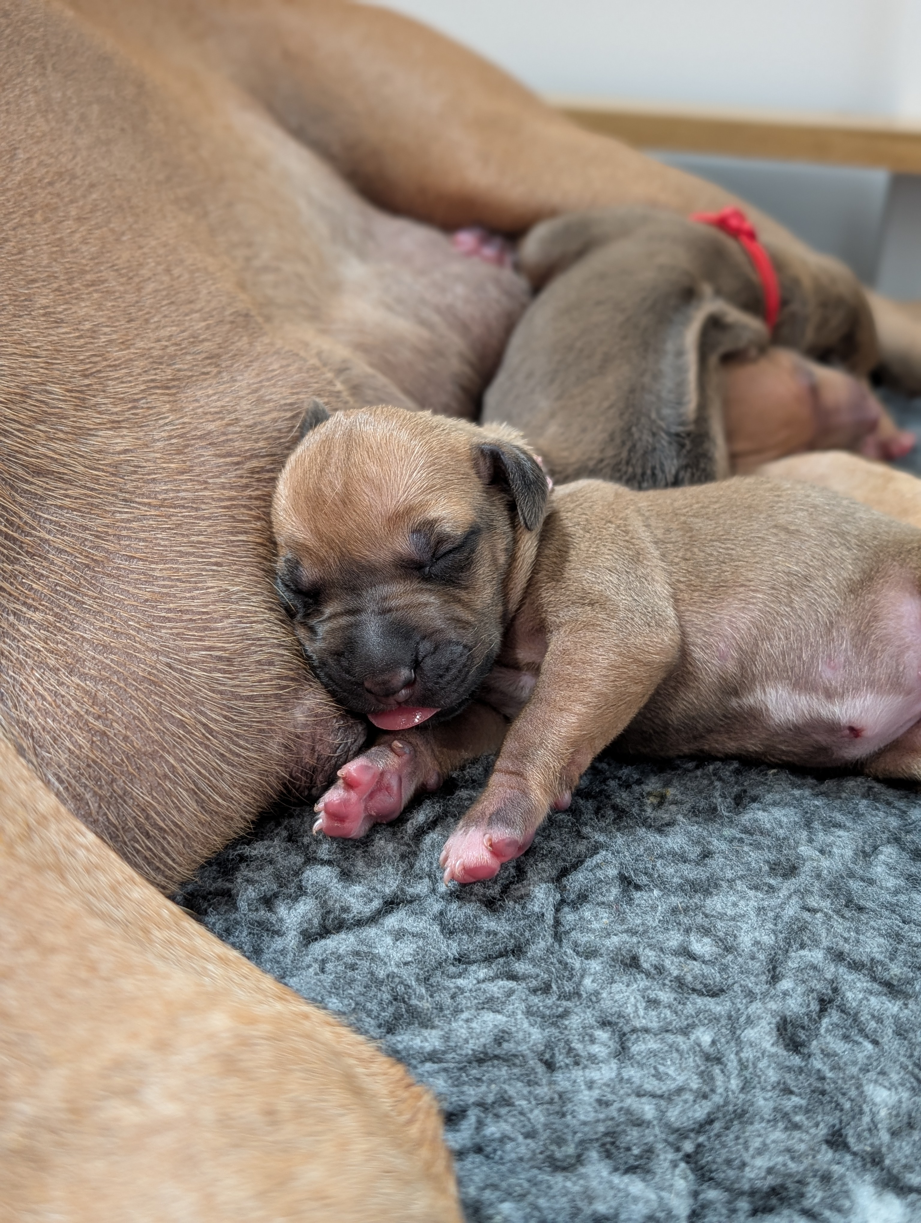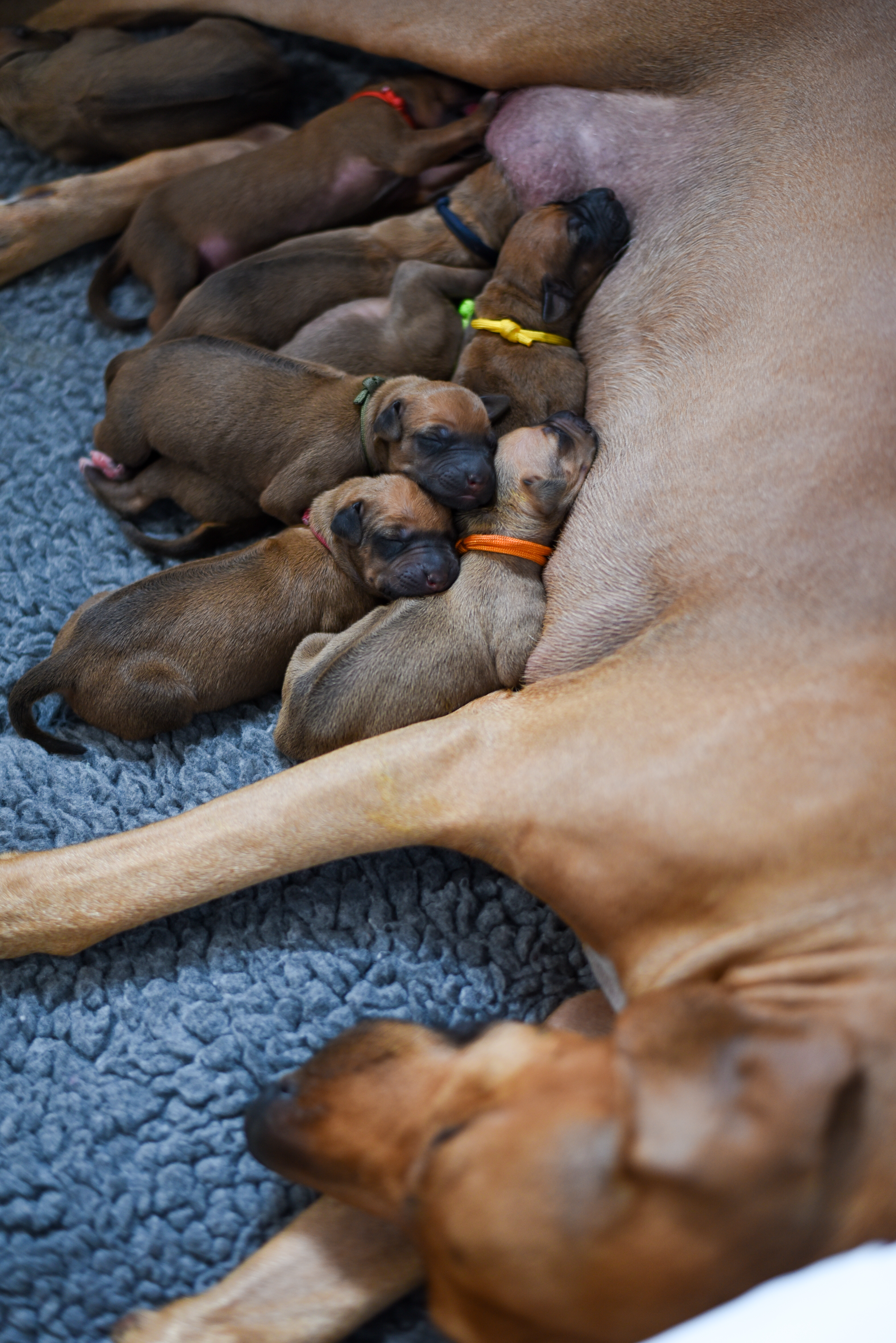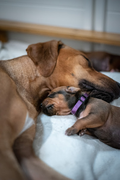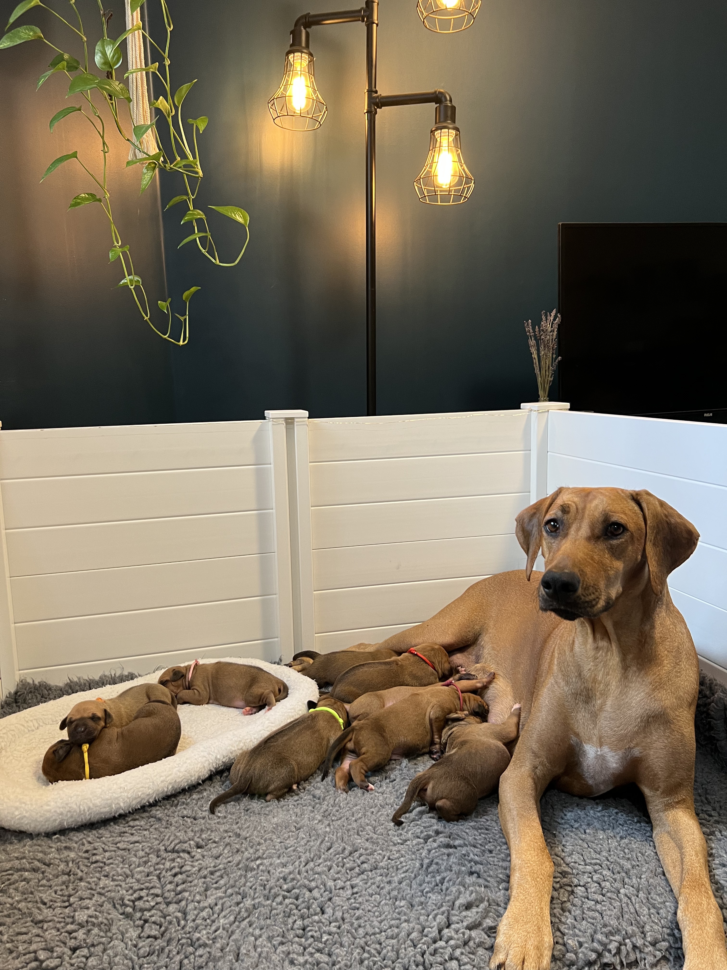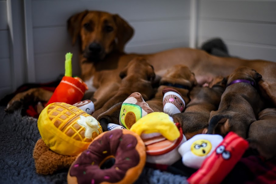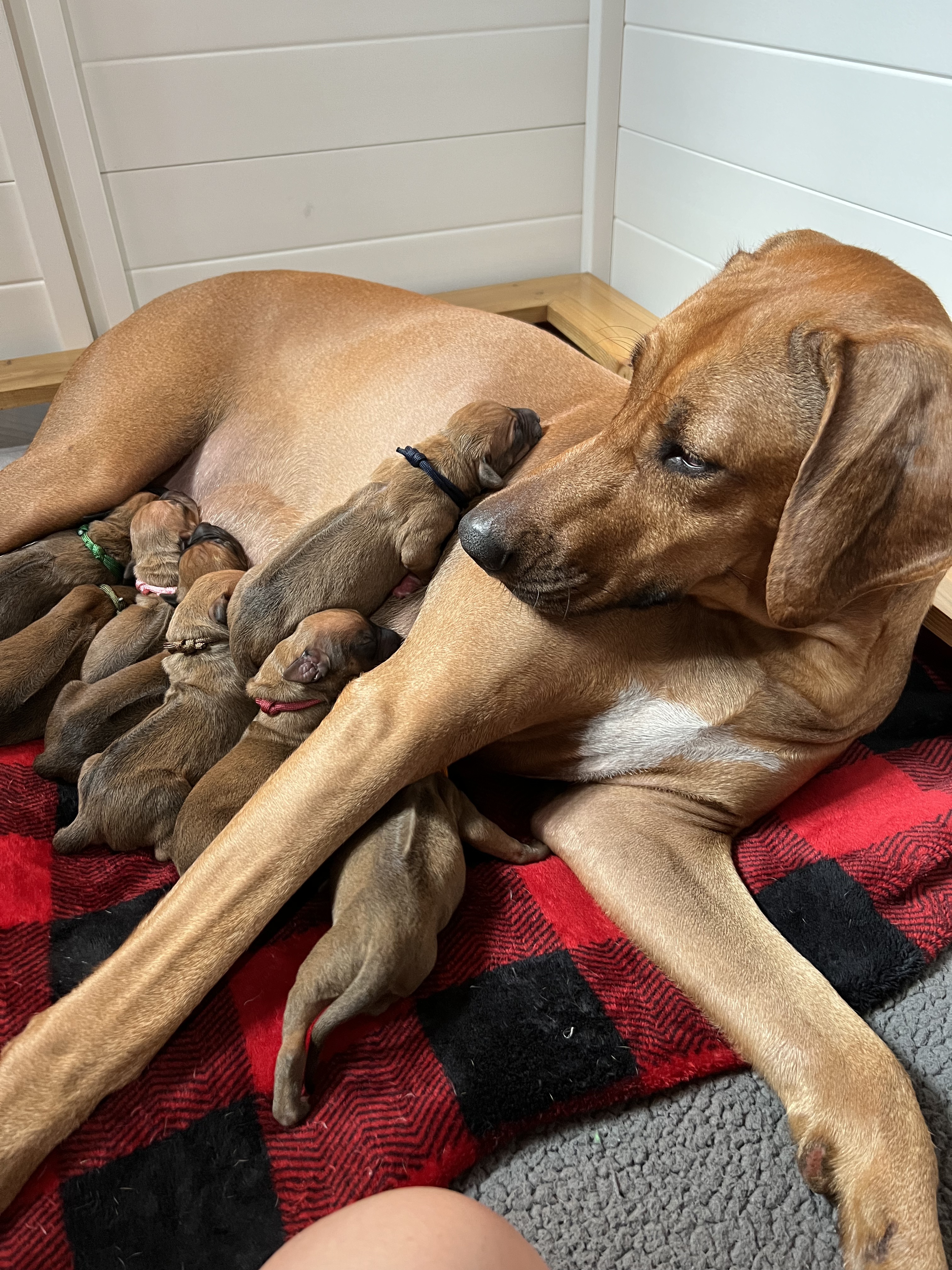 On April 8th, 2024 we began welcoming our Fruit & Veggies litter! Zia delivered 6 handsome boys and 3 beautiful girls. All puppies have lovely ridges and minimal white. We have one puppy with a kink and no dermoid sinus detected.