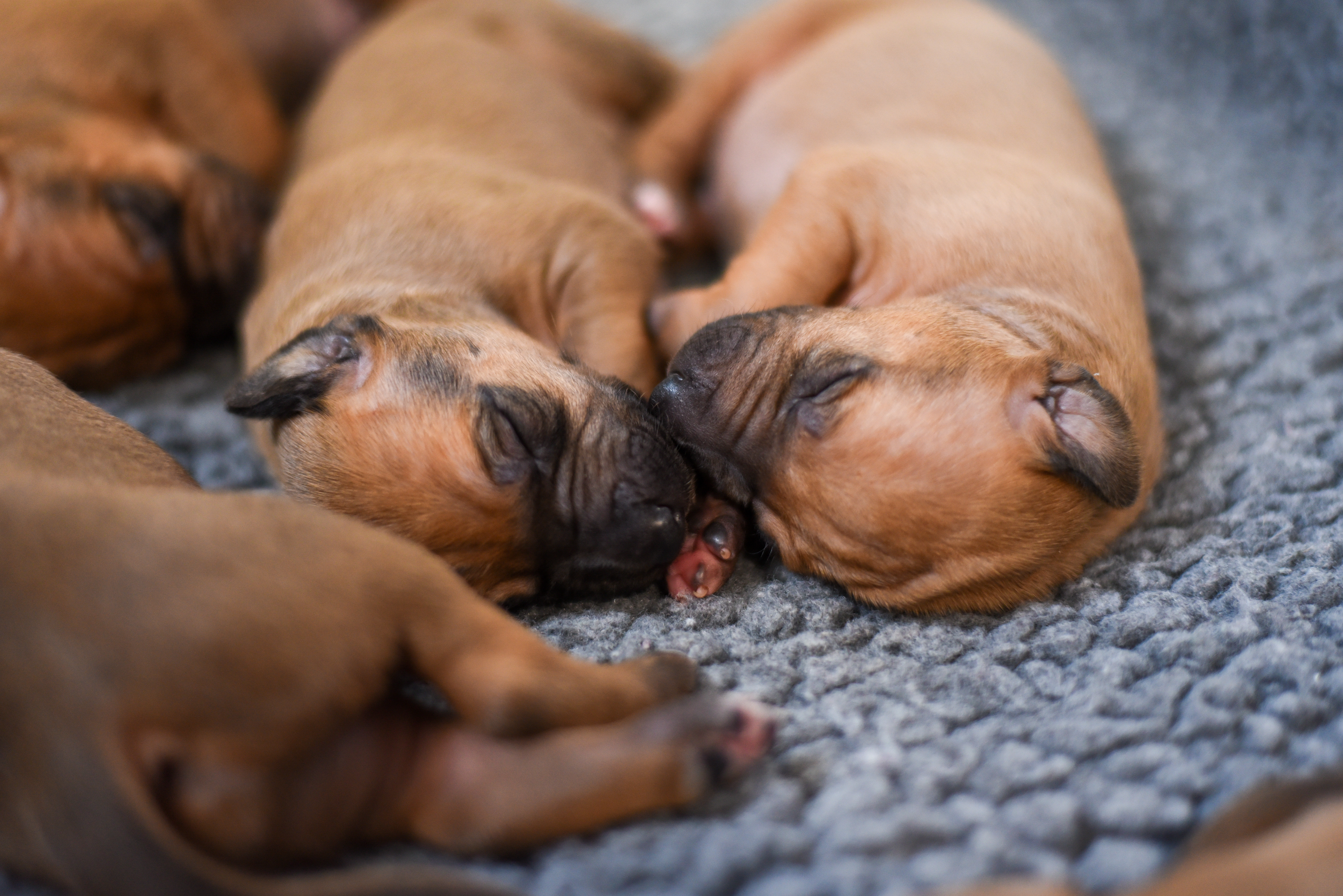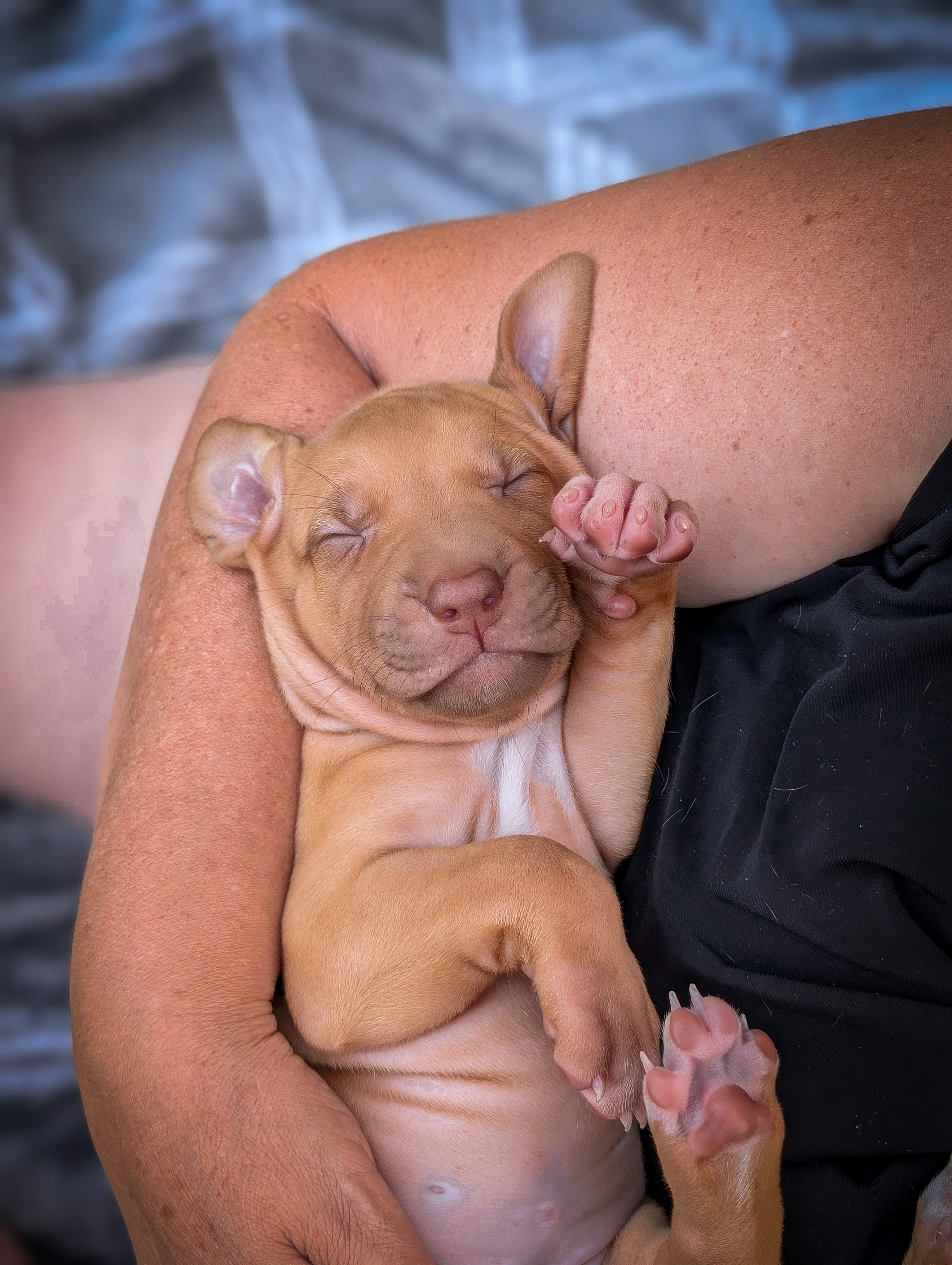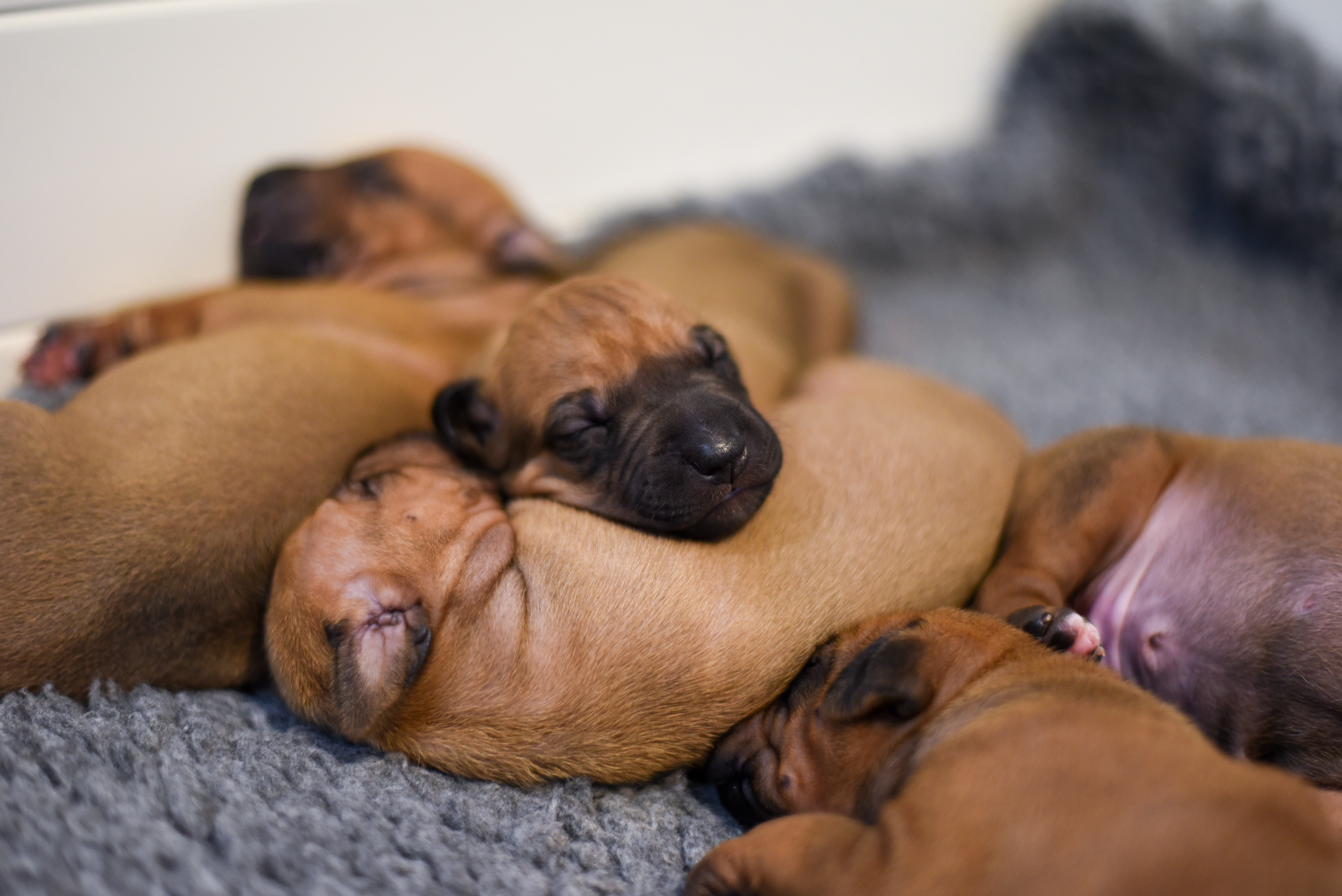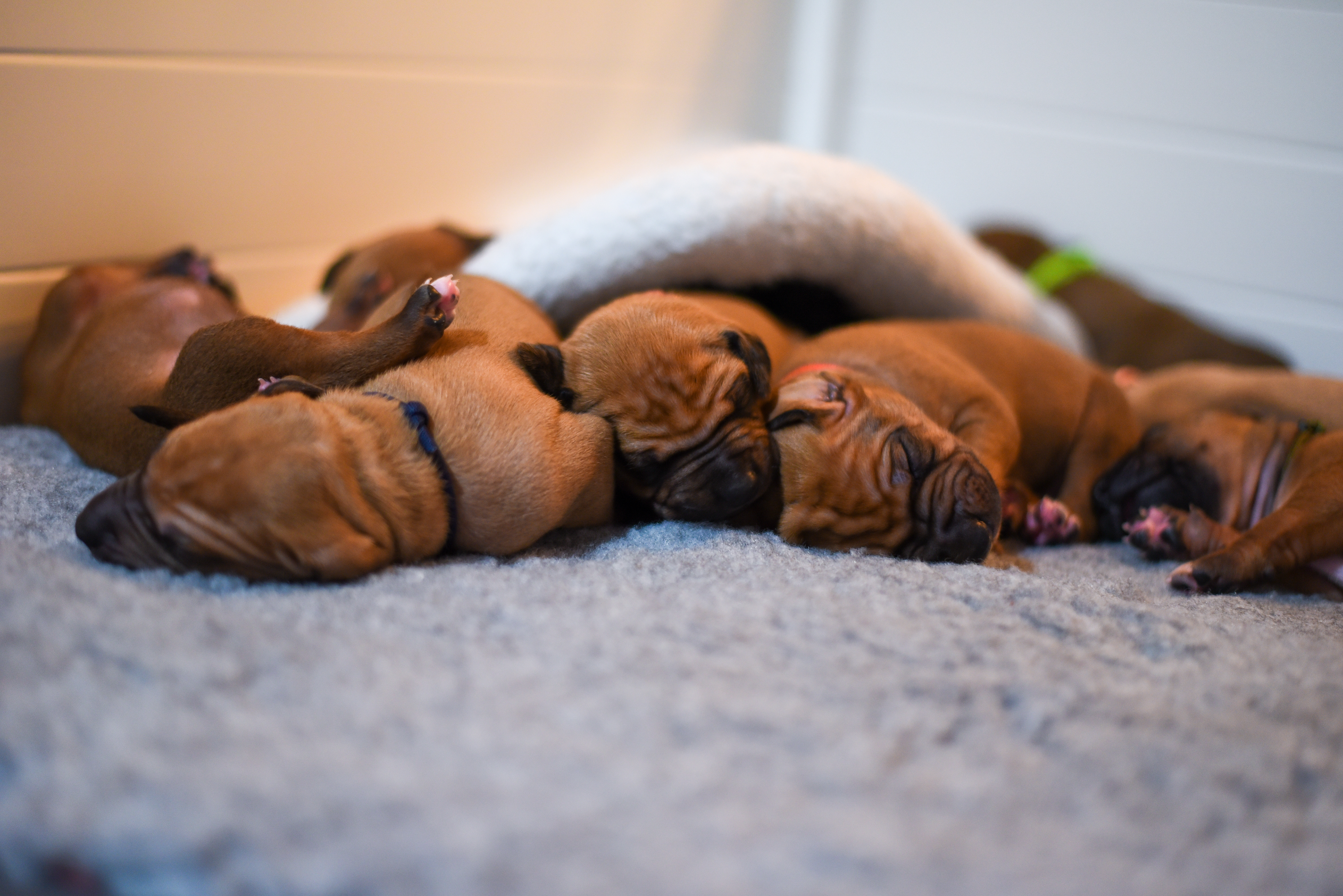 In the early hours of August 2nd, we welcomed the beautiful Happy Hour litter. A lovely split of 3 males and 3 females, everyone has lovely ridges with minimal white. There are two livernoses in this litter (one male, one female). We have two puppies with very small kinks, and zero dermoid sinus detected. I am so very excited to watch this beautiful litter grow!