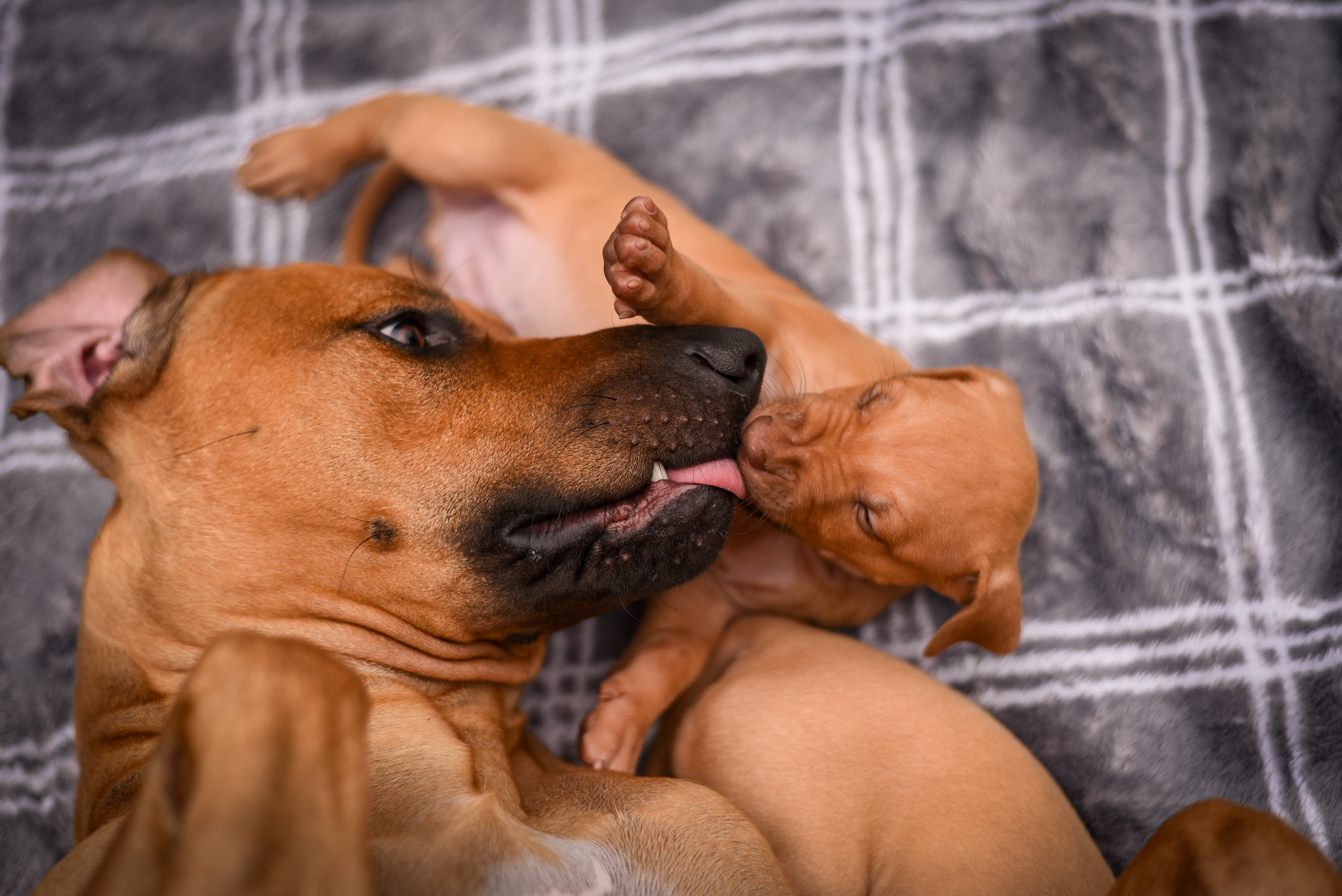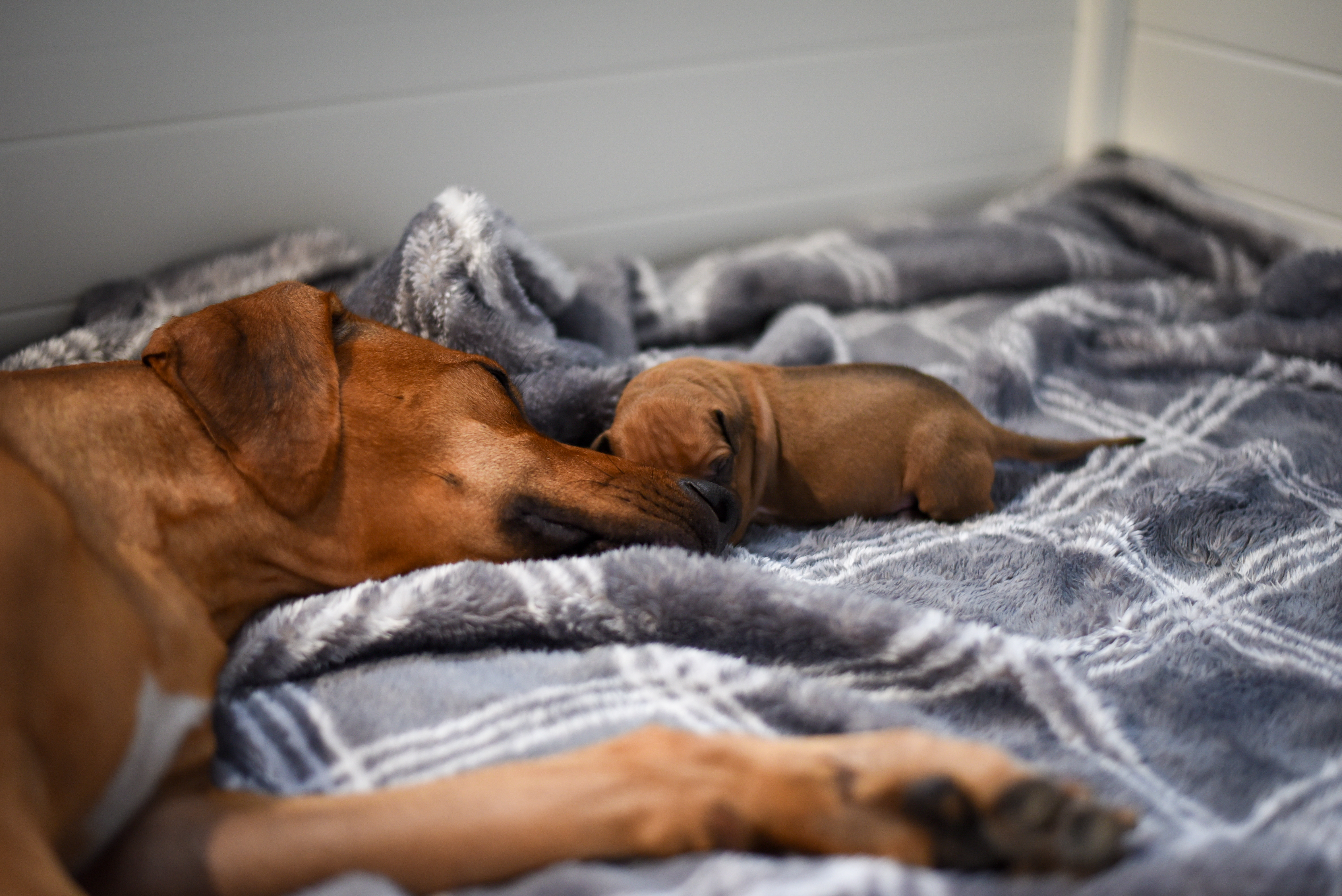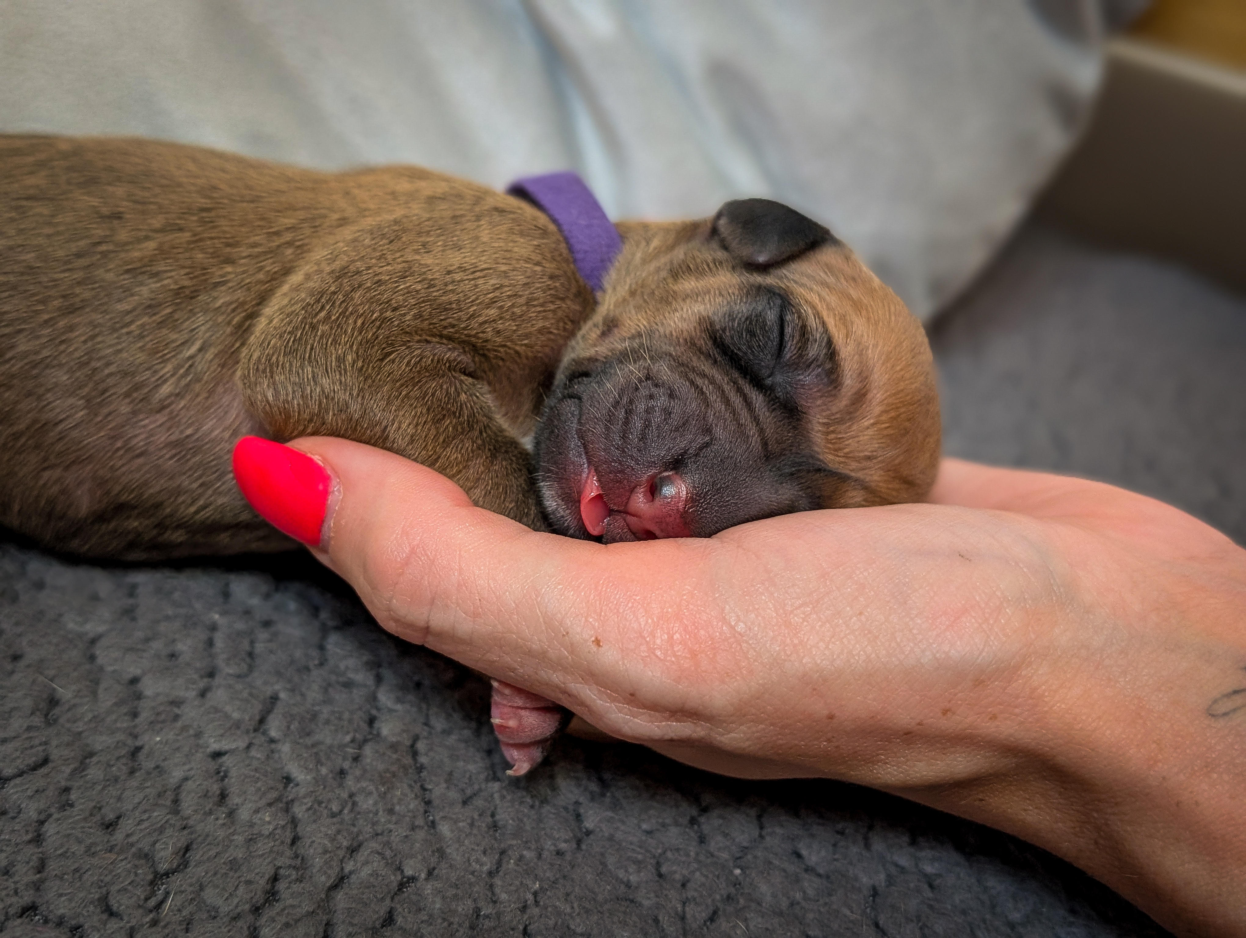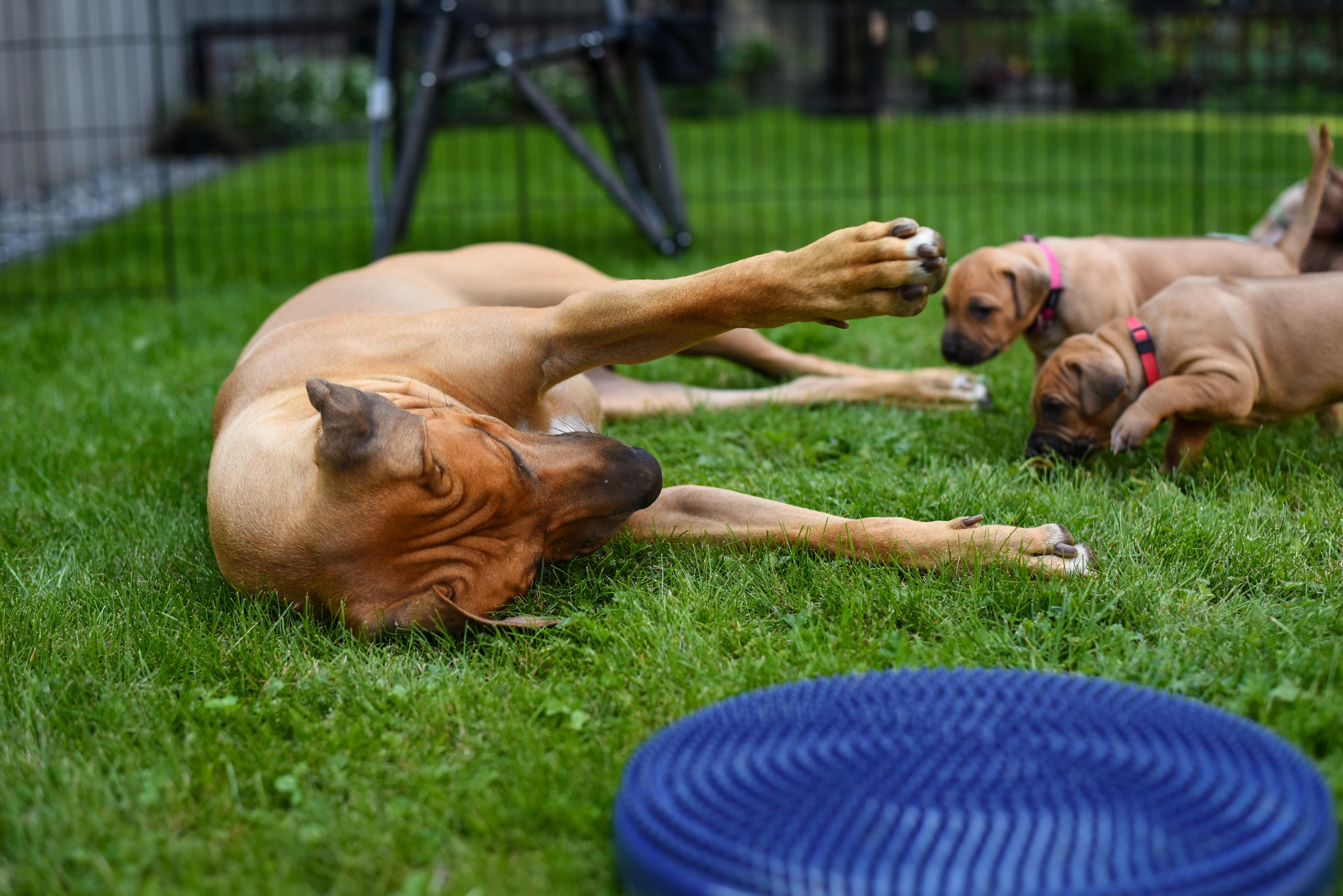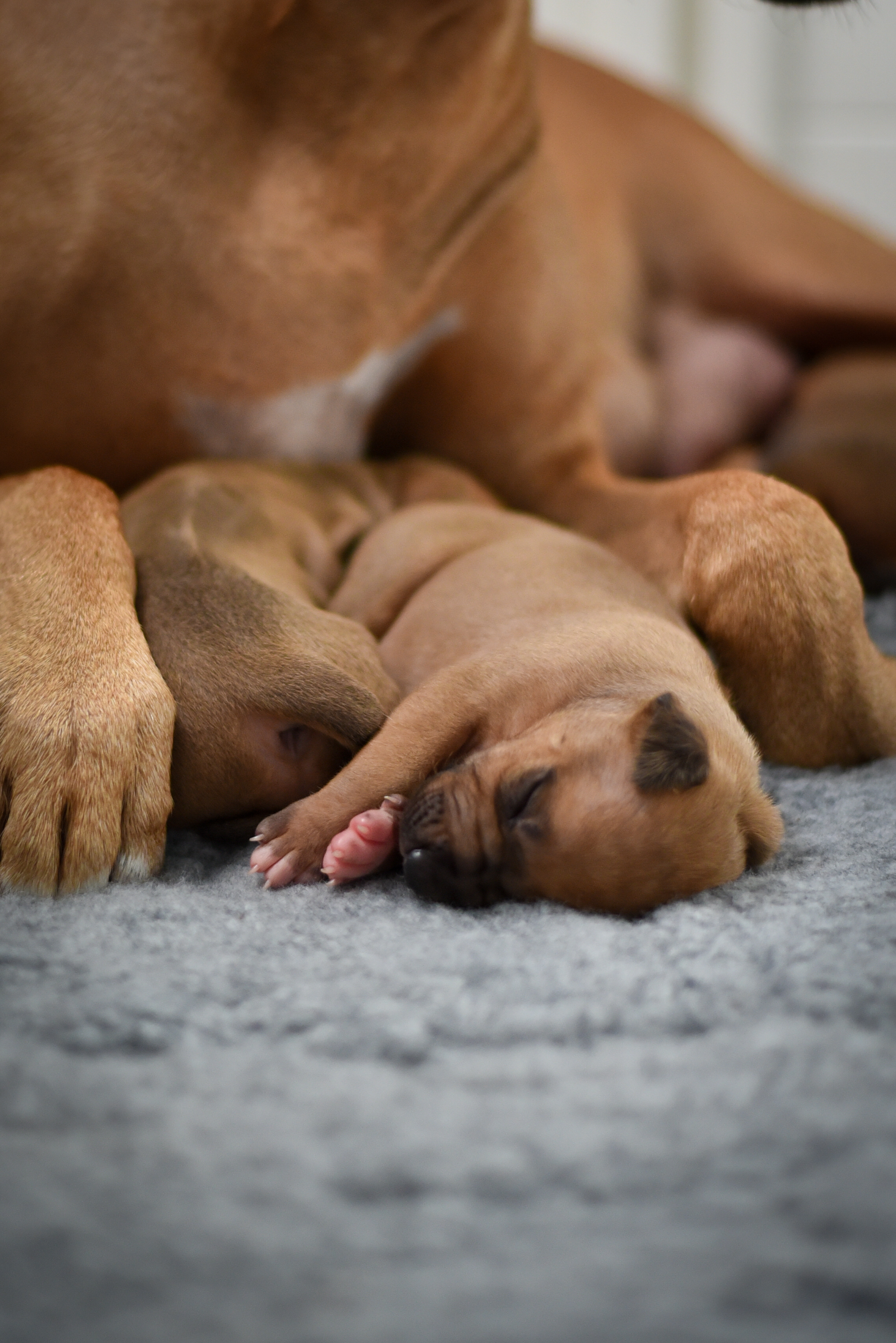 In the early hours of August 2nd, we welcomed the beautiful Happy Hour litter. A lovely split of 3 males and 3 females, everyone has lovely ridges with minimal white. There are two livernoses in this litter (one male, one female). We have two puppies with very small kinks, and zero dermoid sinus detected. I am so very excited to watch this beautiful litter grow!