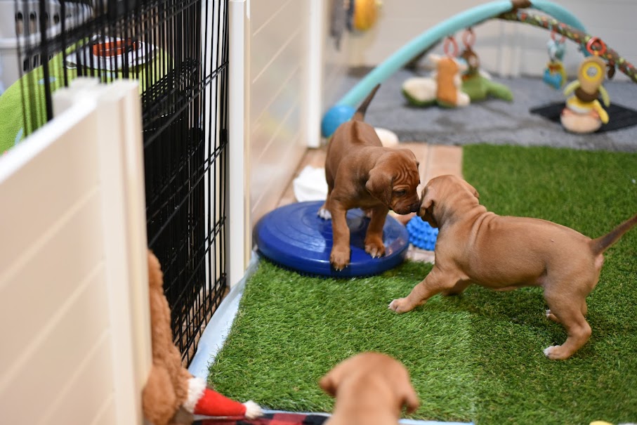 Puppies are weaned onto and raised on a balanced raw food diet. We use both Puppy Culture and Avidog programs to provide our puppies with a strong foundation to set them up for a lifetime of success.