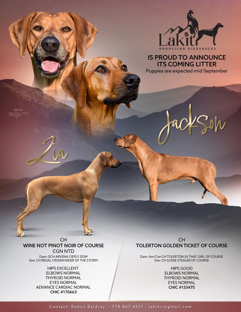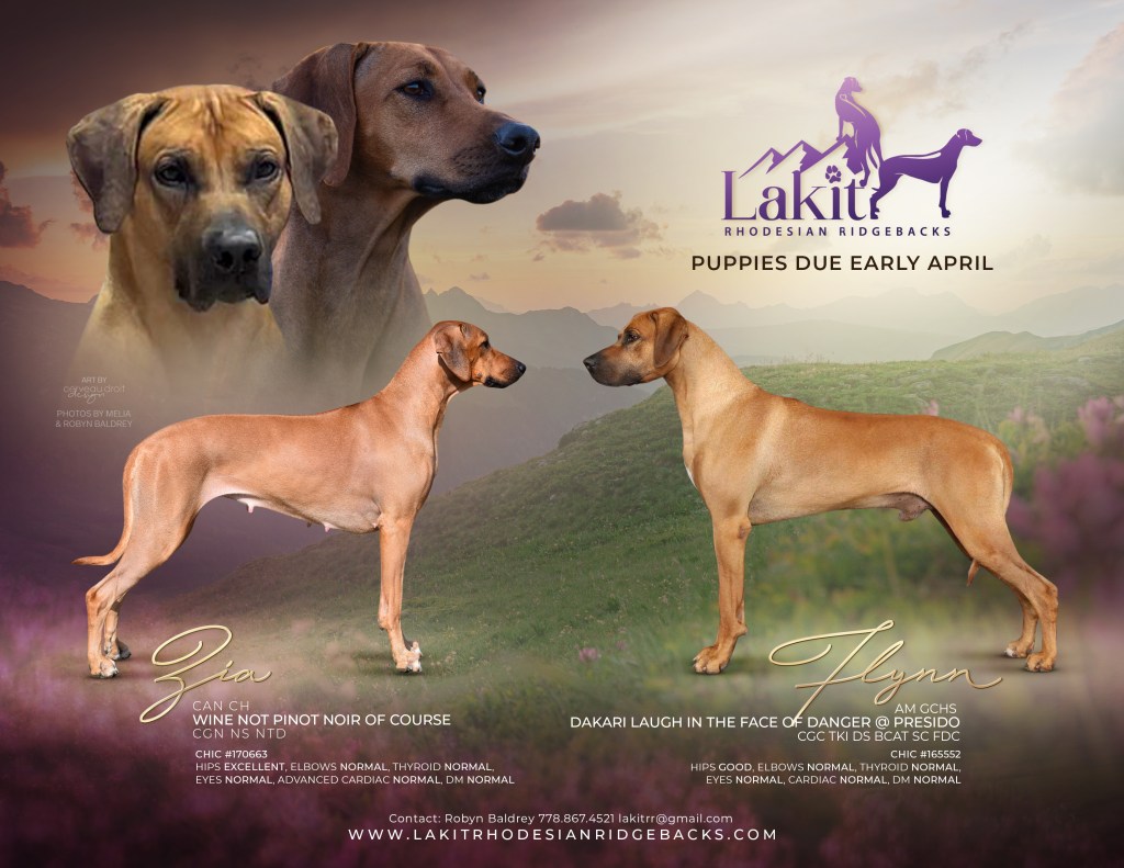If you are interested in adding a Rhodesian Ridgeback to your home, please email me at lakitrr@gmail.com