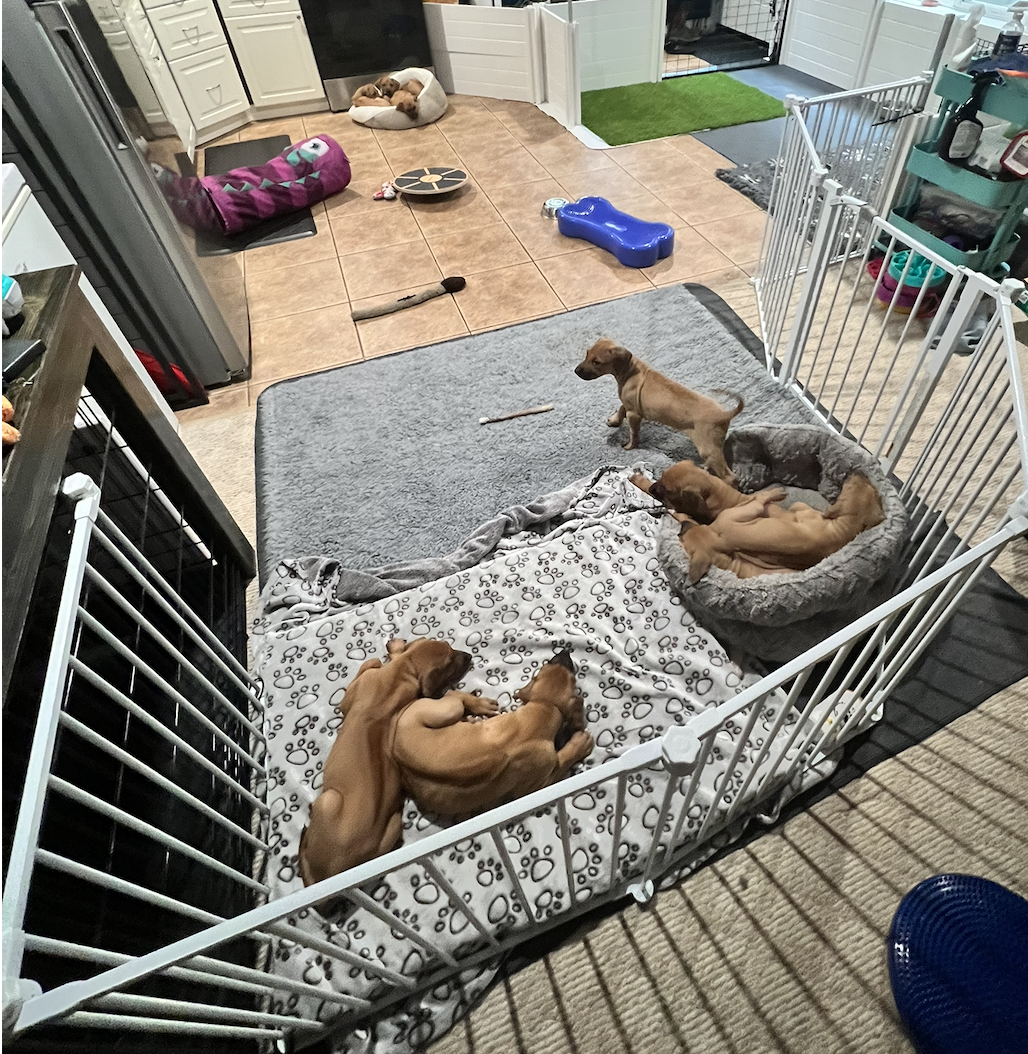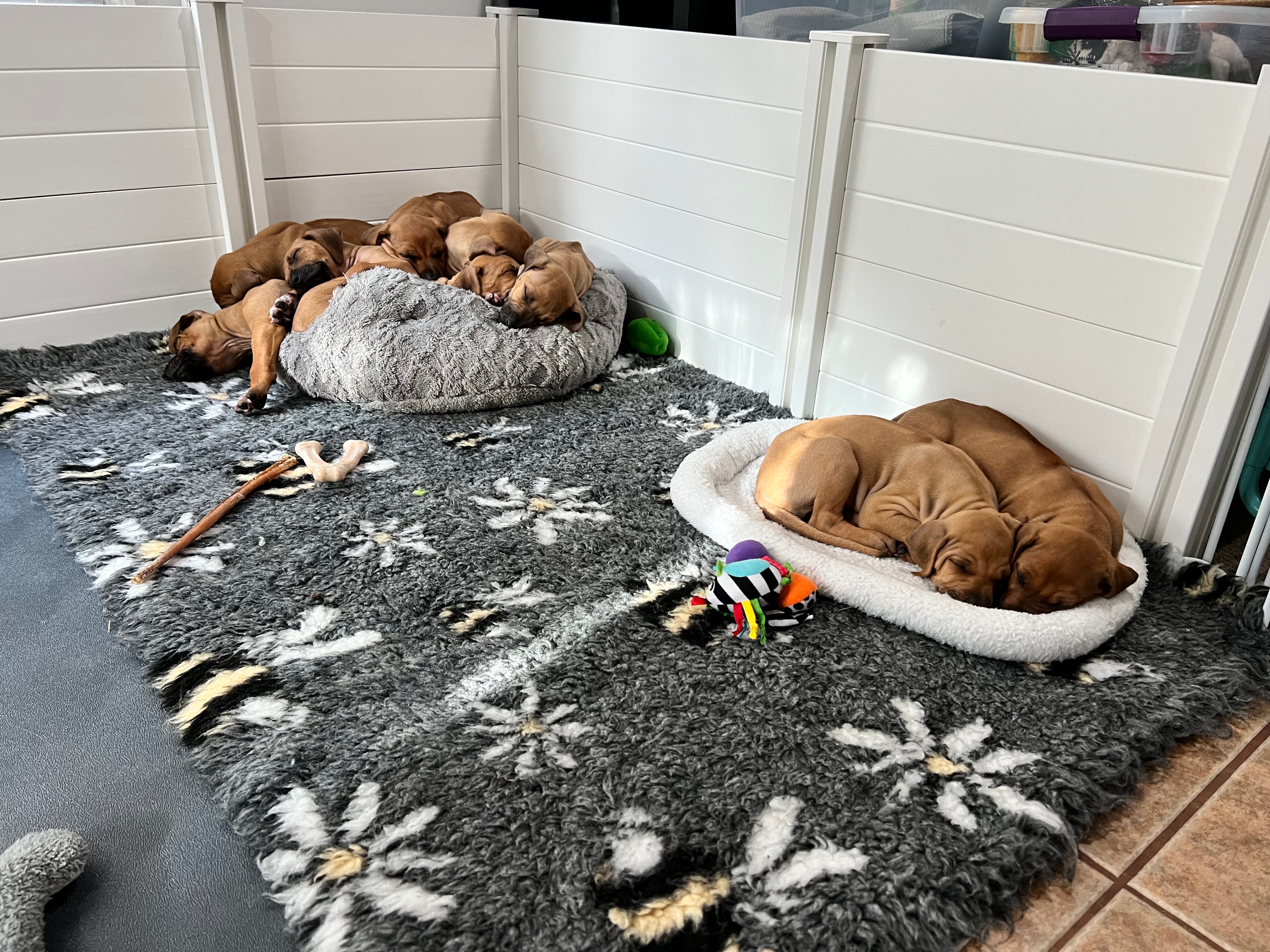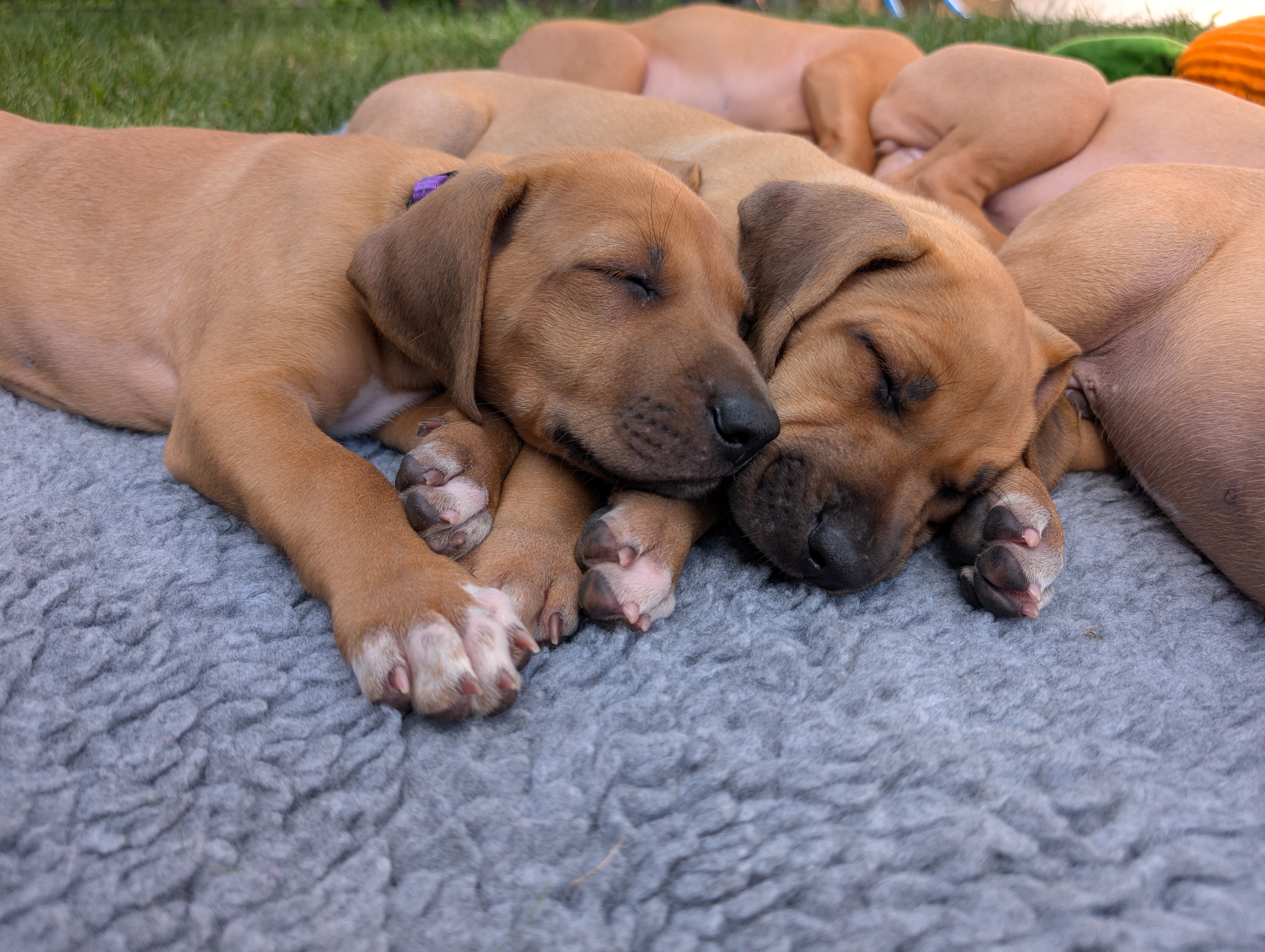On April 8th, 2024 we began welcoming our Fruit & Veggies litter! Zia delivered 6 handsome boys and 3 beautiful girls. All puppies have lovely ridges and minimal white. We have one puppy with a kink and no dermoid sinus detected.