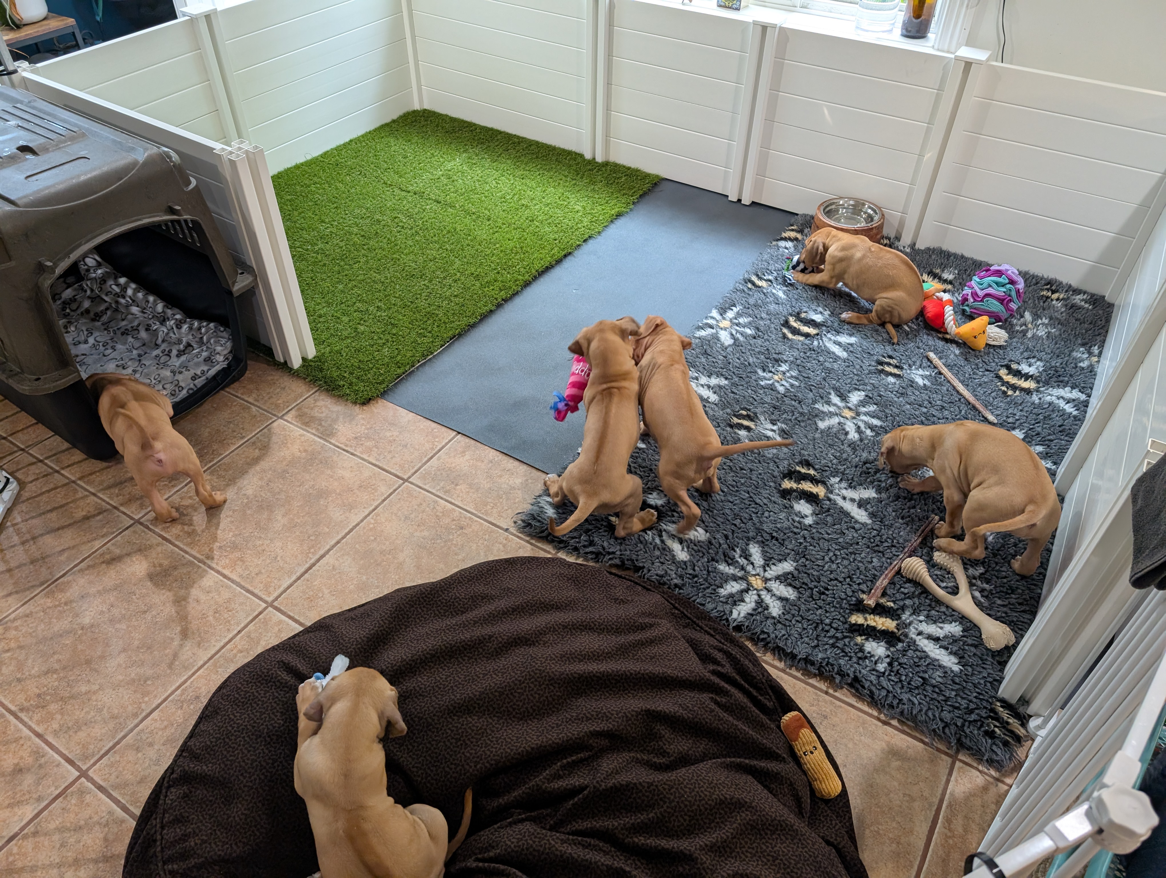 Puppies are weaned and raised on a balanced raw food diet. While I understand not everyone is able to commit to a full raw diet, I do strongly suggest adding in fresh food additions to your puppy’s (and adult dog’s!) food. Research shows how much a difference it makes in their longevity and I am more than happy to help answer any questions or concerns you may have.