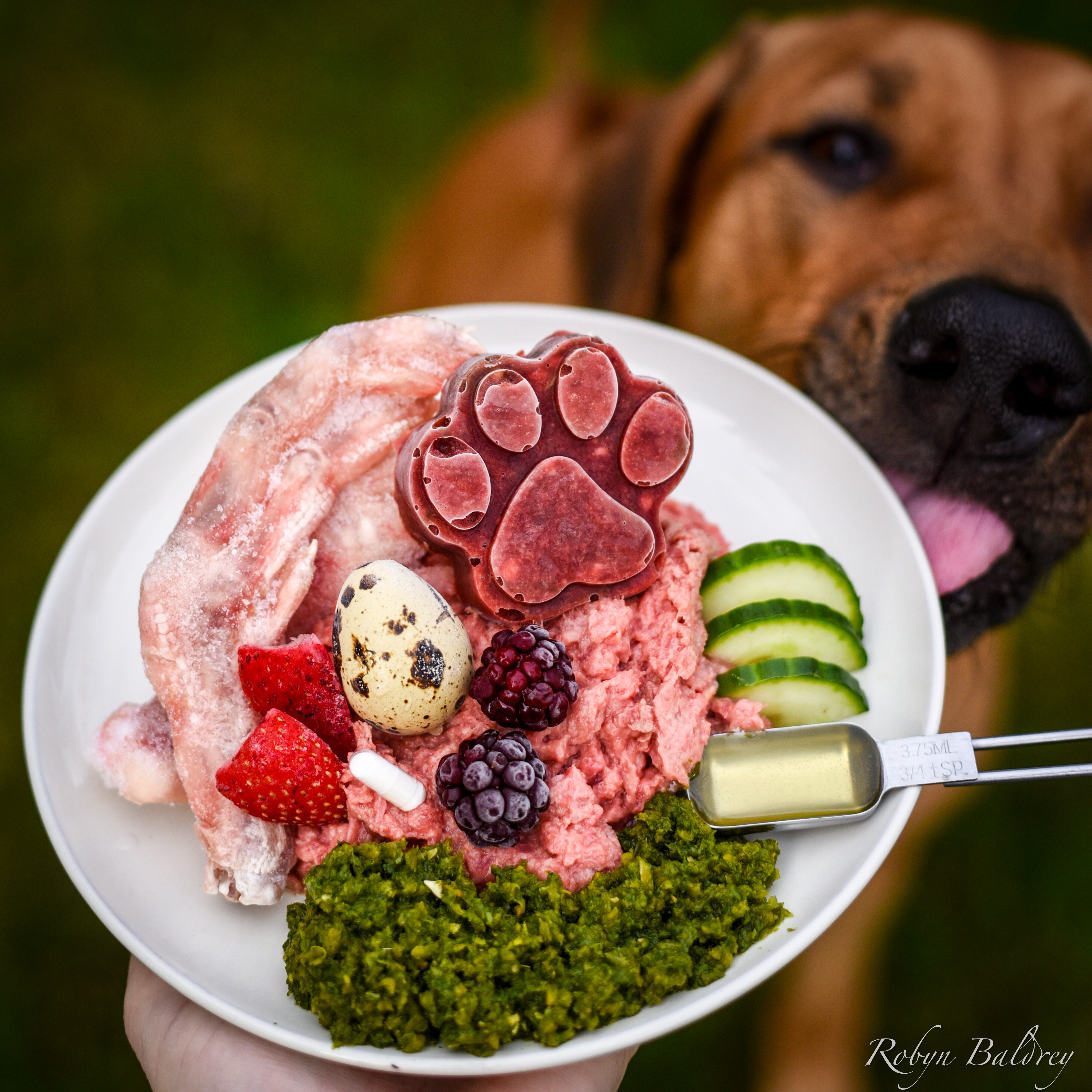 If you don’t have the time to make your own – brands like Natural Instincts, RDBK, 3P Naturals and GreenJuju make a variety of veggie blends you can rotate through. Veggies provide so much great nutrition and are a must for every diet 😊